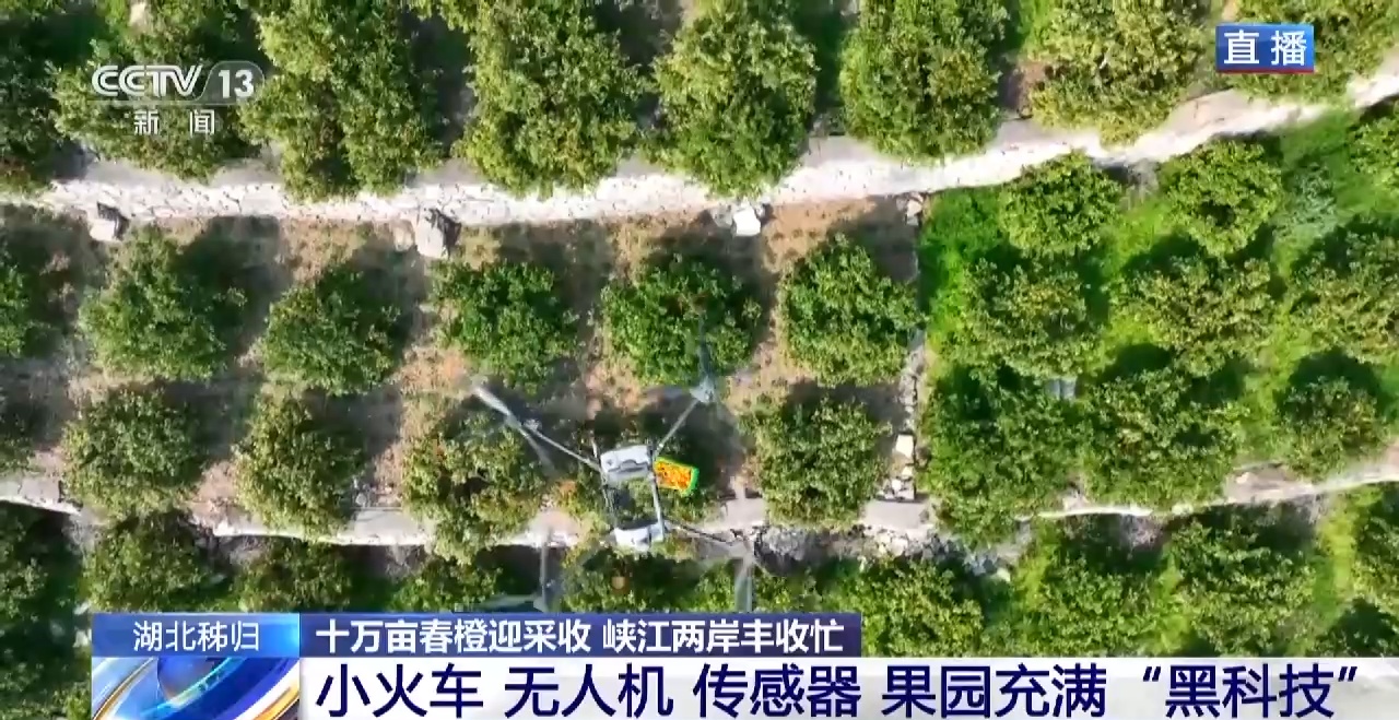 总台记者 佘利霞:近年来,秭归县鼓励果农在山间安装单轨、双轨“小火车”,以机械替代人力运输。另外,无人机也参与到橙子的运输当中,在一些比较陡峭的果园,无人机就能发挥重要作用。