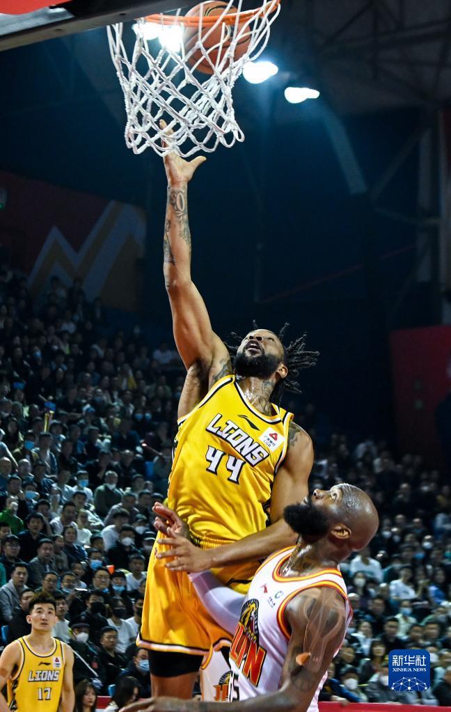 4月2日,浙江东阳光队球员威尔斯(上)在比赛中上篮。新华社记者 颜麟蕴 摄