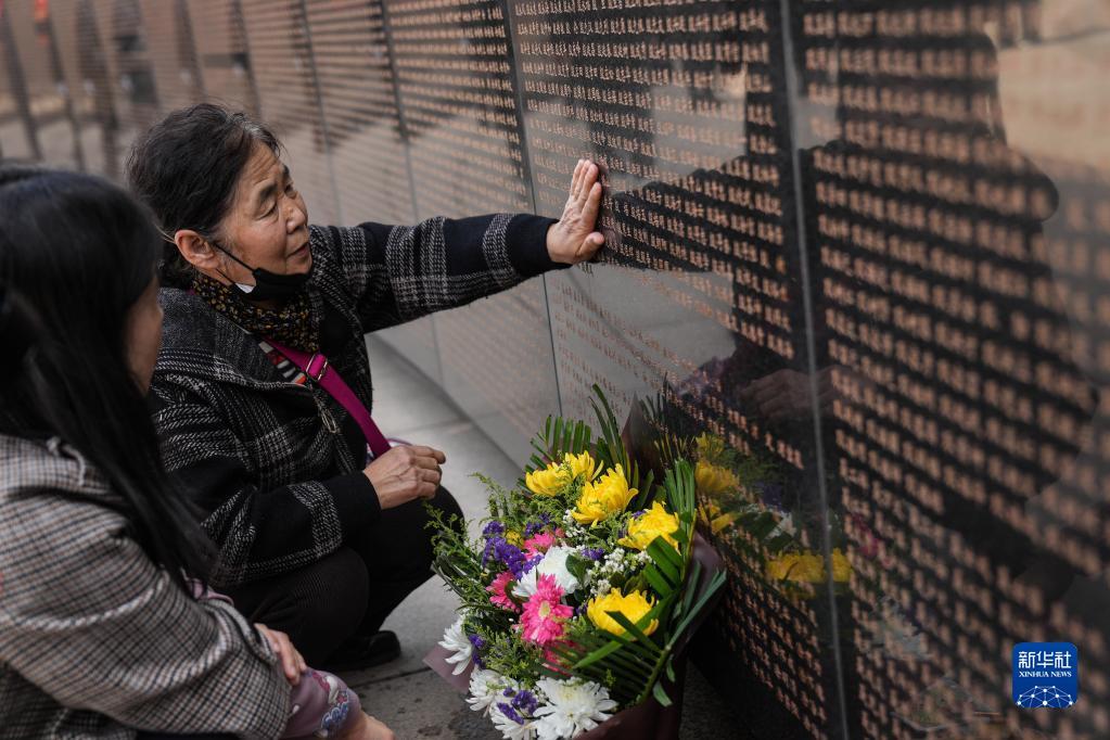 4月3日,74岁的董长兰从北京来到沈阳抗美援朝烈士陵园,祭奠自己的父亲殷伦。新华社记者 潘昱龙 摄