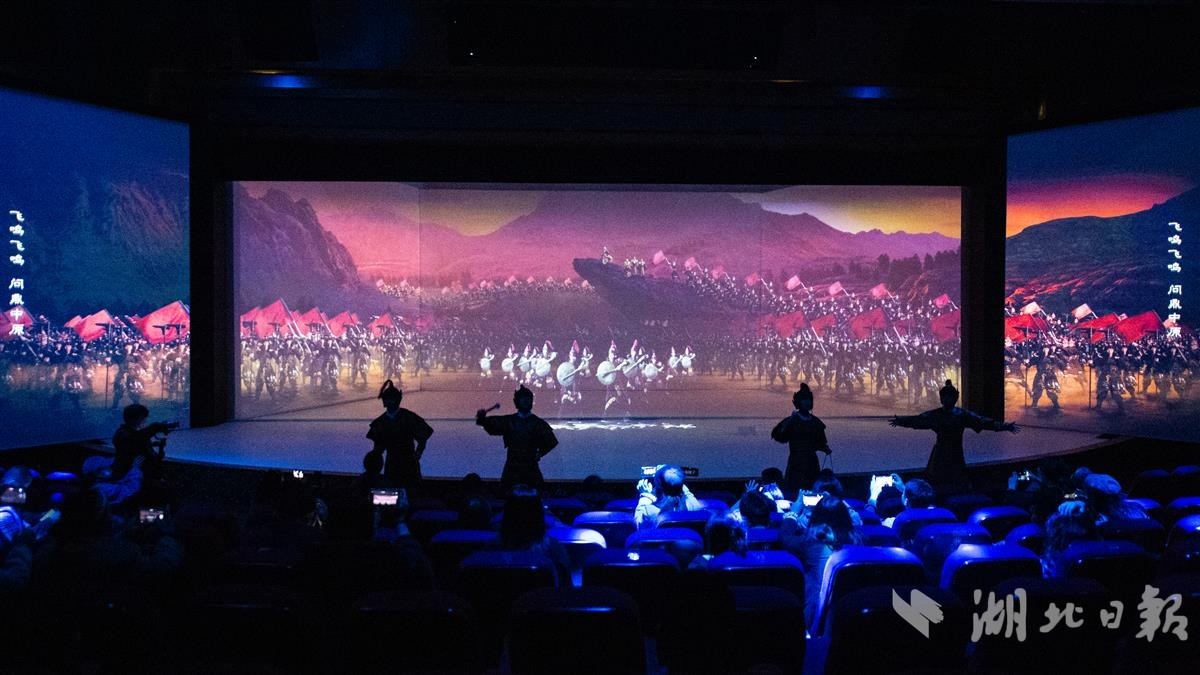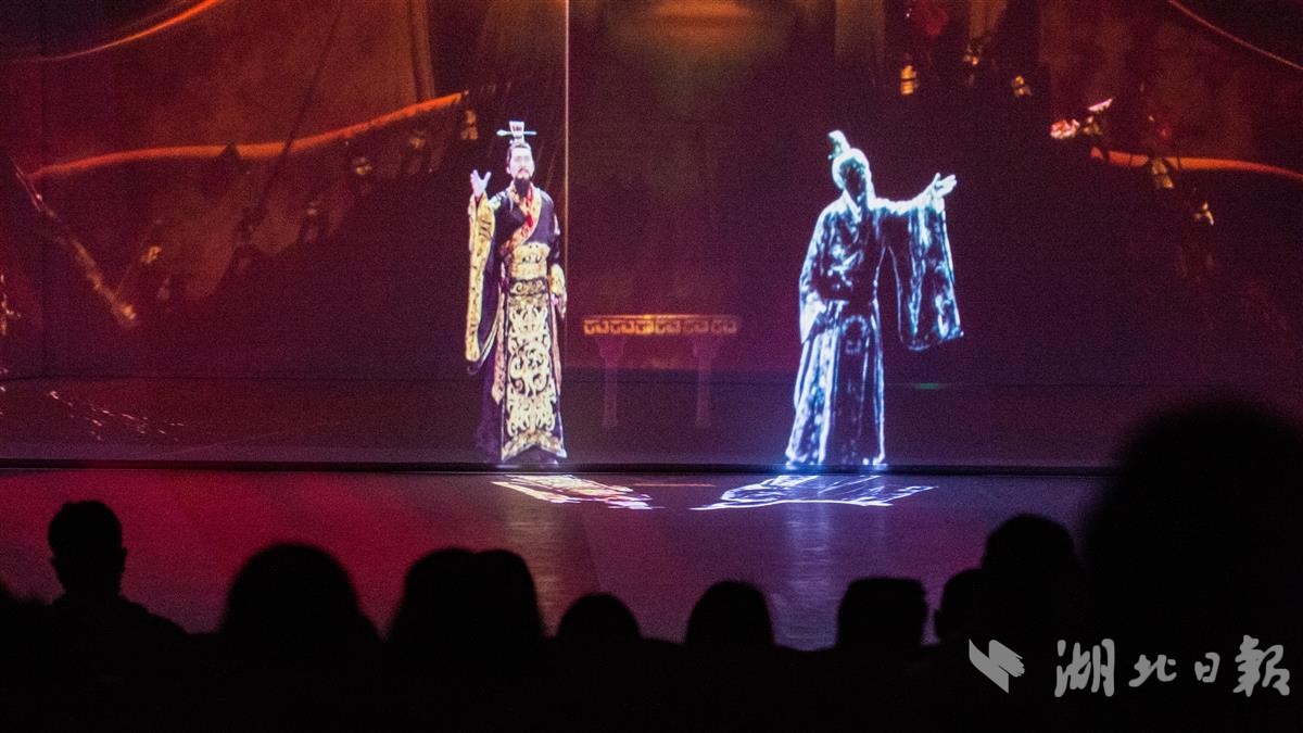 湖北是楚文化的发祥地,楚庄王是楚文化的代表人物,其一鸣惊人、争霸春秋的故事流传至今,早已深深融入中华民族文化基因。《遇见·楚庄王》通过“虚拟现实、真人演出、裸眼3D”等技术,再现了楚庄王韬光养晦、一鸣惊人、问鼎中原的传奇历史。(湖北日报全媒记者 何宇欣 摄)