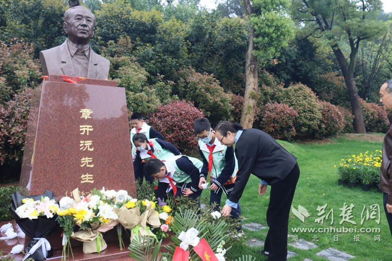傅家坡小学“新时代小先生”给章开沅先生献花。通讯员供图