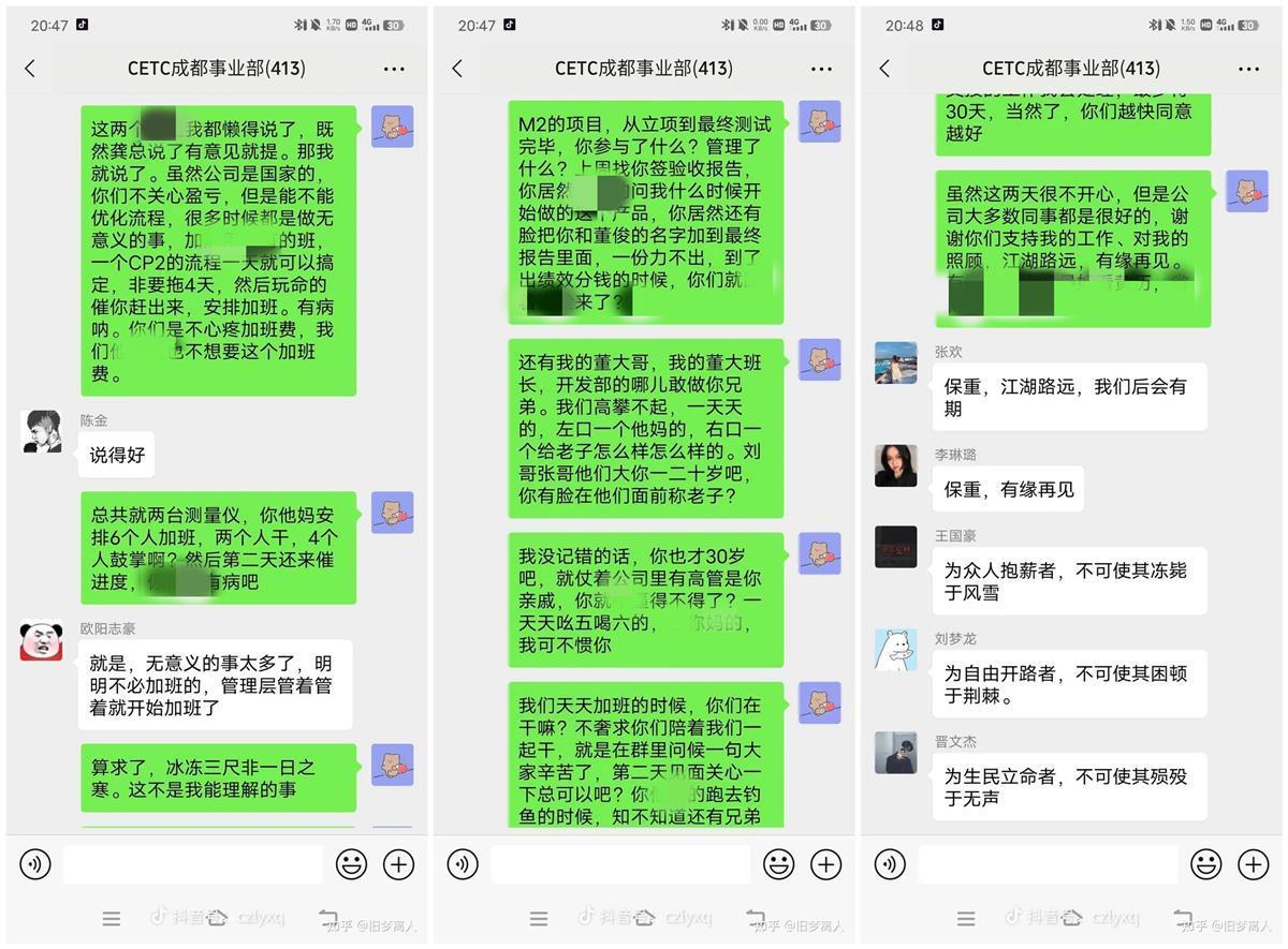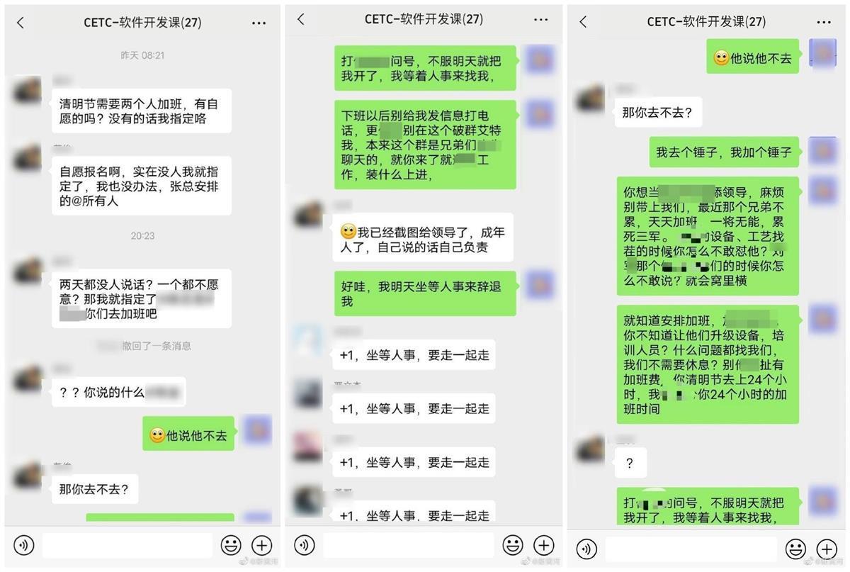 4月4日,疑似“中国电科清明节强制加班怒怼领导”的相关聊天记录在网络上传播,引发热议。
