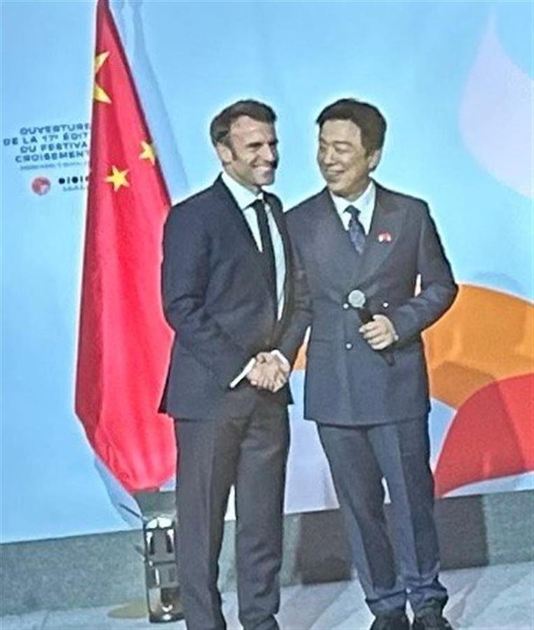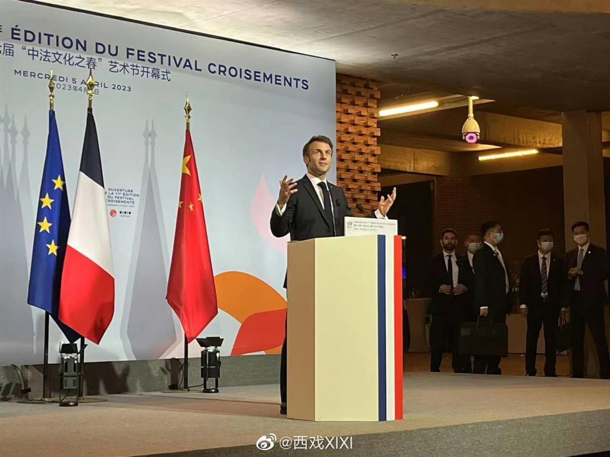 4月5日晚,刚刚抵达中国进行国事访问的法国总统马克龙现身北京一家美术馆,参加第17届“中法文化之春”艺术节开幕式。活动上,担任揭幕嘉宾的马克龙与本届艺术节的宣传大使、中国著名演员黄渤同台亮相,互动频频,为开幕式奉上诸多亮点。