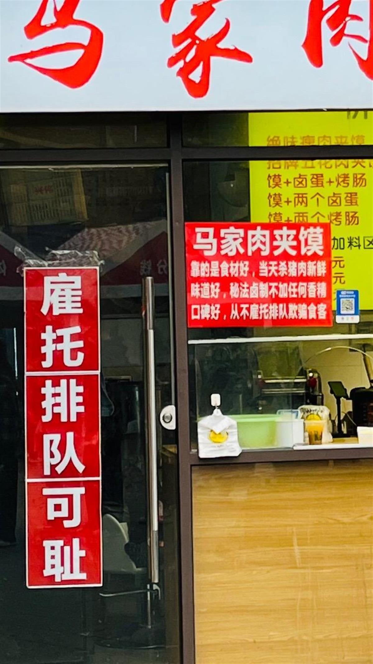 肉夹馍店门口贴“雇托排队可耻”(来源网络)