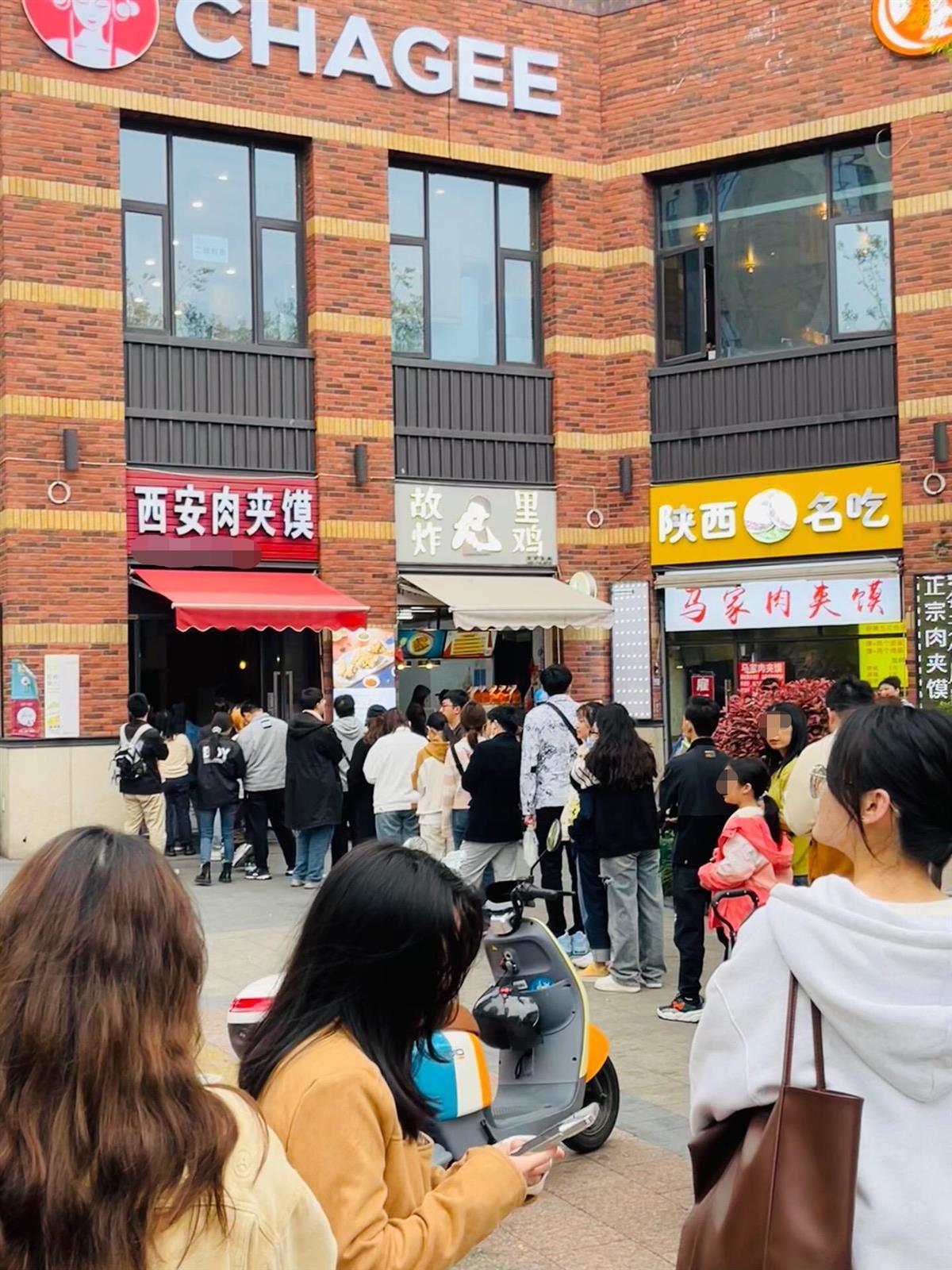许多顾客排长队的西安肉夹馍店(来源网络)