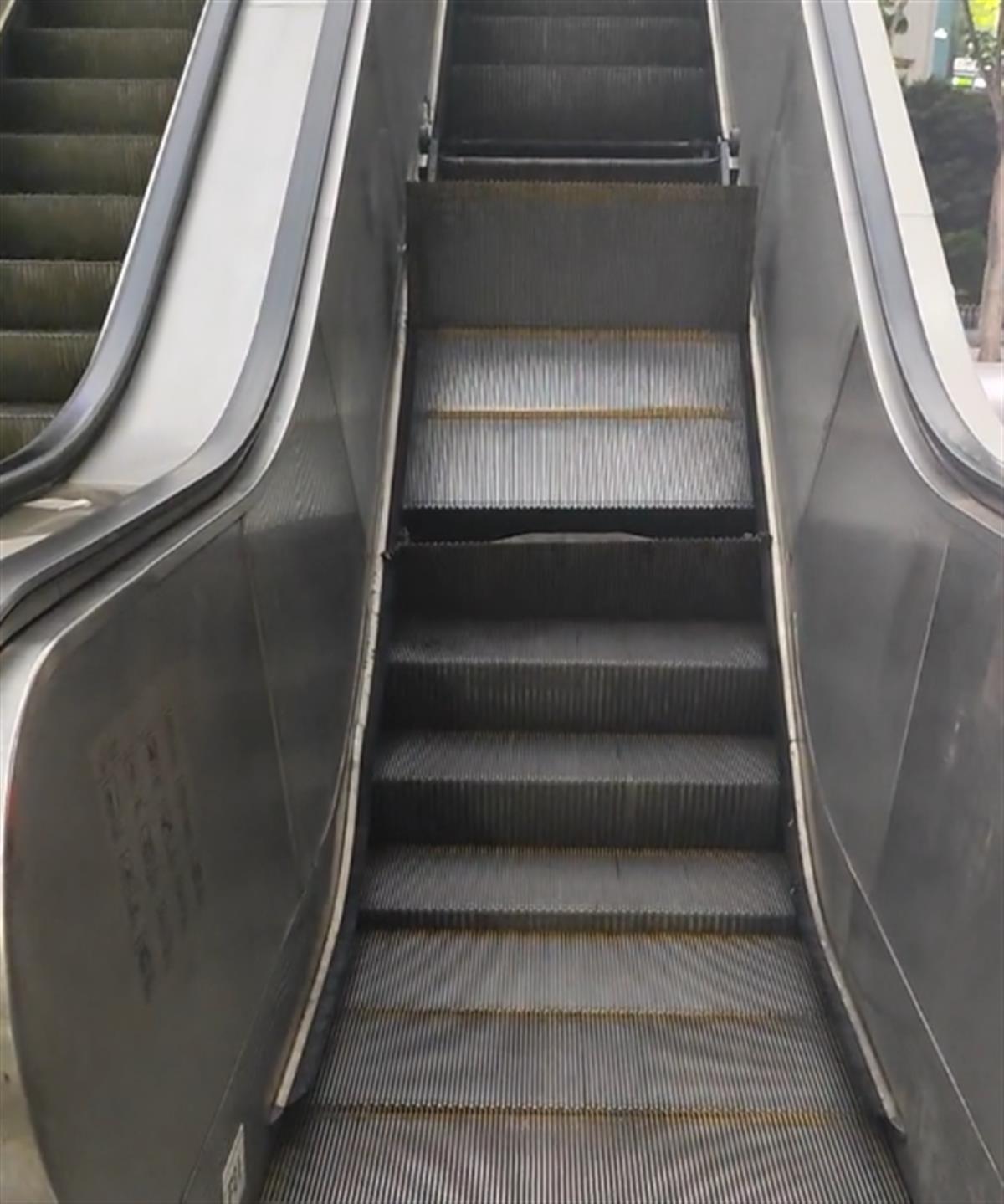 广州一户外手扶电梯运行过程中突发故障,阶梯踏板发生翻转,露出巨大“豁口”,情形十分危险。4月7日,物业服务中心工作人员回应极目新闻记者称,所幸当时没有乘客乘坐电梯,目前正在加急采购所需零部件,进行电梯维修。