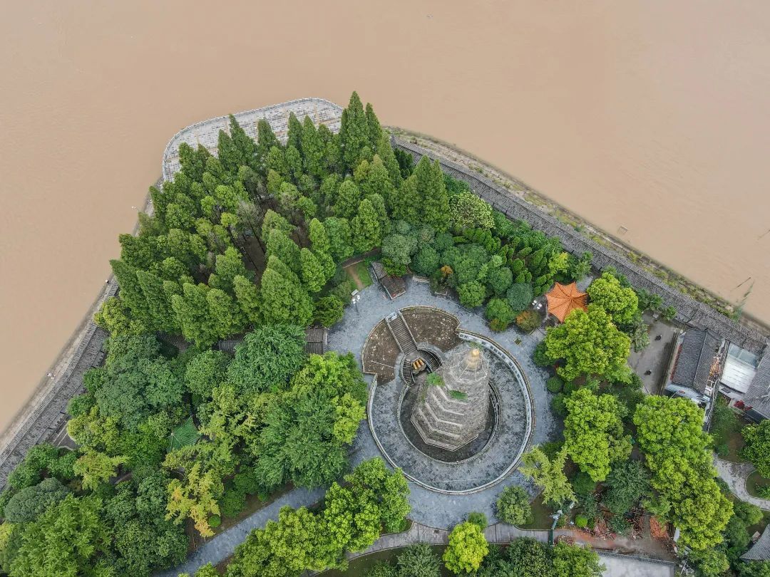 远望滚滚东流的江水,伴着肆意拍打的浪花,走进万寿园区,触摸这座历经四个多世纪洗礼的万寿宝塔。这里依堤伴水,九曲回肠的荆江之水三面环绕,环境古朴典雅,含蓄曲折,令人回味无穷,折射出荆楚文化中自然而又超越自然的深邃意境。