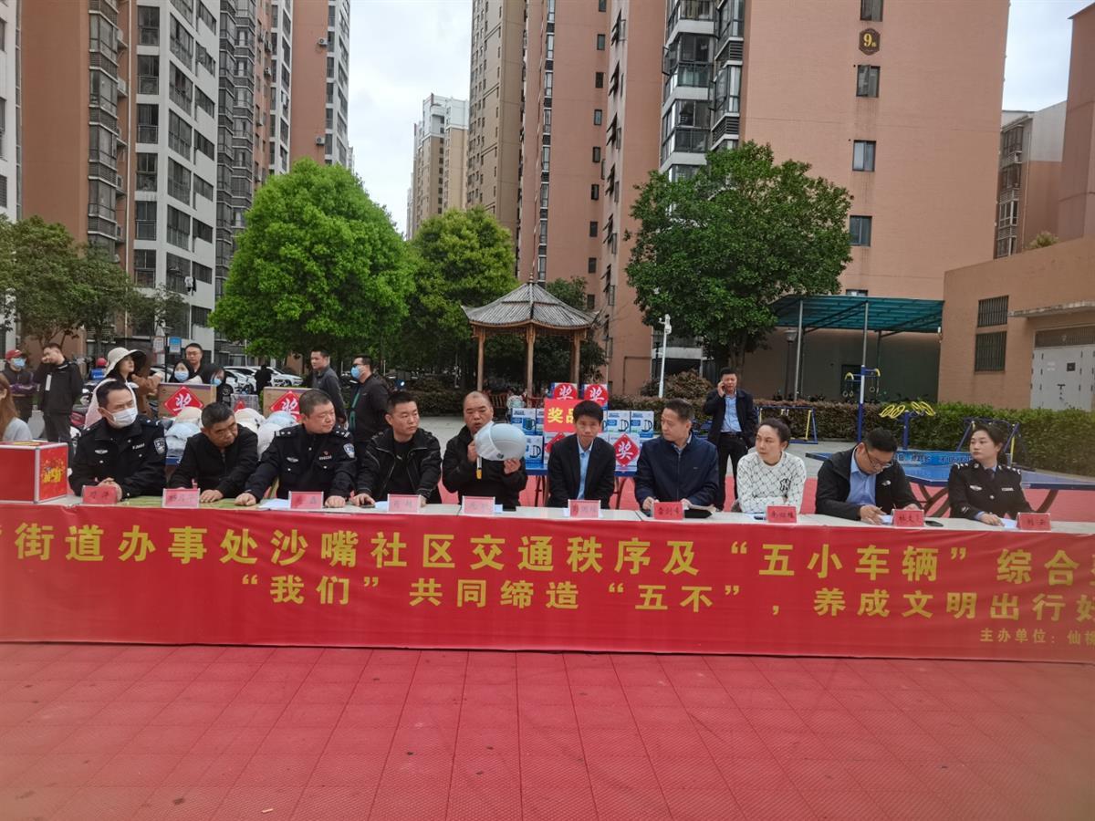 4月6日,仙桃市沙嘴街道办事处组织举办“我们共同缔造‘五不’,养成文明出行好习惯”宣传活动。现场,党员干部、志愿者、爱心人士和居民等参加活动。