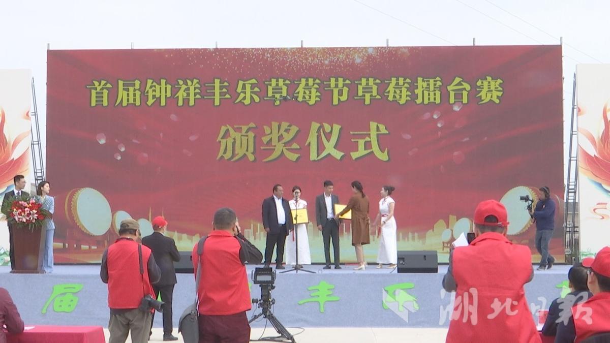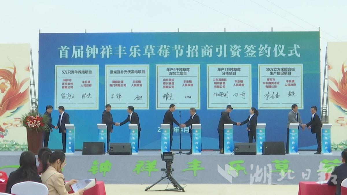 开幕式上还举行了丰乐草莓擂台赛颁奖仪式,钟祥市禾之润生态农业发展有限公司与湖北农科院经济作物研究所签订了科技合作协议,丰乐镇与企业负责人签订了5万只湖羊养殖、渔光互补光伏发电、年产6千吨草莓深加工、年产1万吨草莓分拣、30万立方米胶合板生产建设等5个项目。5位百岁老人现场讲述了与草莓的故事并为丰乐草莓产业的发展送上了祝福。