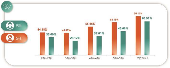对于武汉市男性体检人群,覆盖最广泛的健康问题是体重指数(BMI)增高,检出率54.07%,其中,检出率最高的年龄段为40岁至49岁,超过64%。