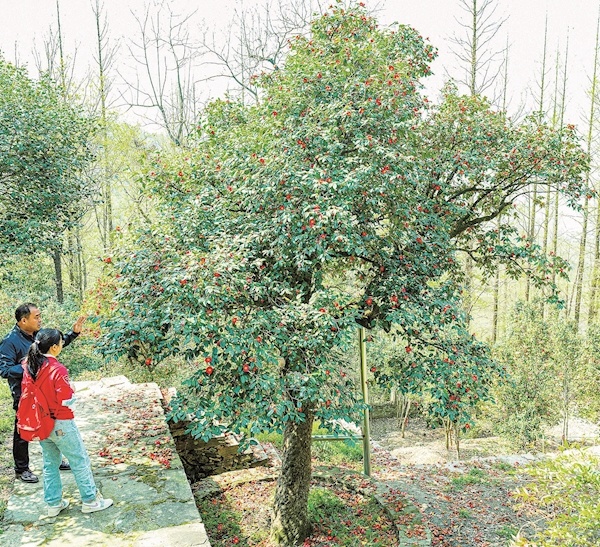 记者从湖北省林业局了解到,山茶古树在湖北仅14棵,树龄最大的山茶古树约1400多岁,深居在蕲春县株林镇三角山村里。