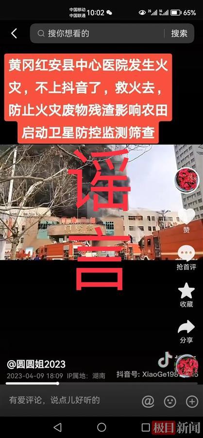4月9日,抖音账号“圆圆姐2023”发布视频称,湖北省黄冈市“红安县中心医院”发生火灾。经极目新闻记者核实,视频中起火地点并非湖北省红安县的医院,而是山东省滨州市某医院;红安县没有一家“中心医院”,目前红安县各医院均正常为居民提供医疗服务。