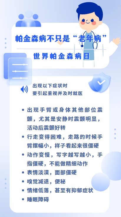 4月11日是世界帕金森病日。帕金森病是一种神经系统变性疾病,在60岁以上老年人群中高发,却并不是老年人的“专属”。