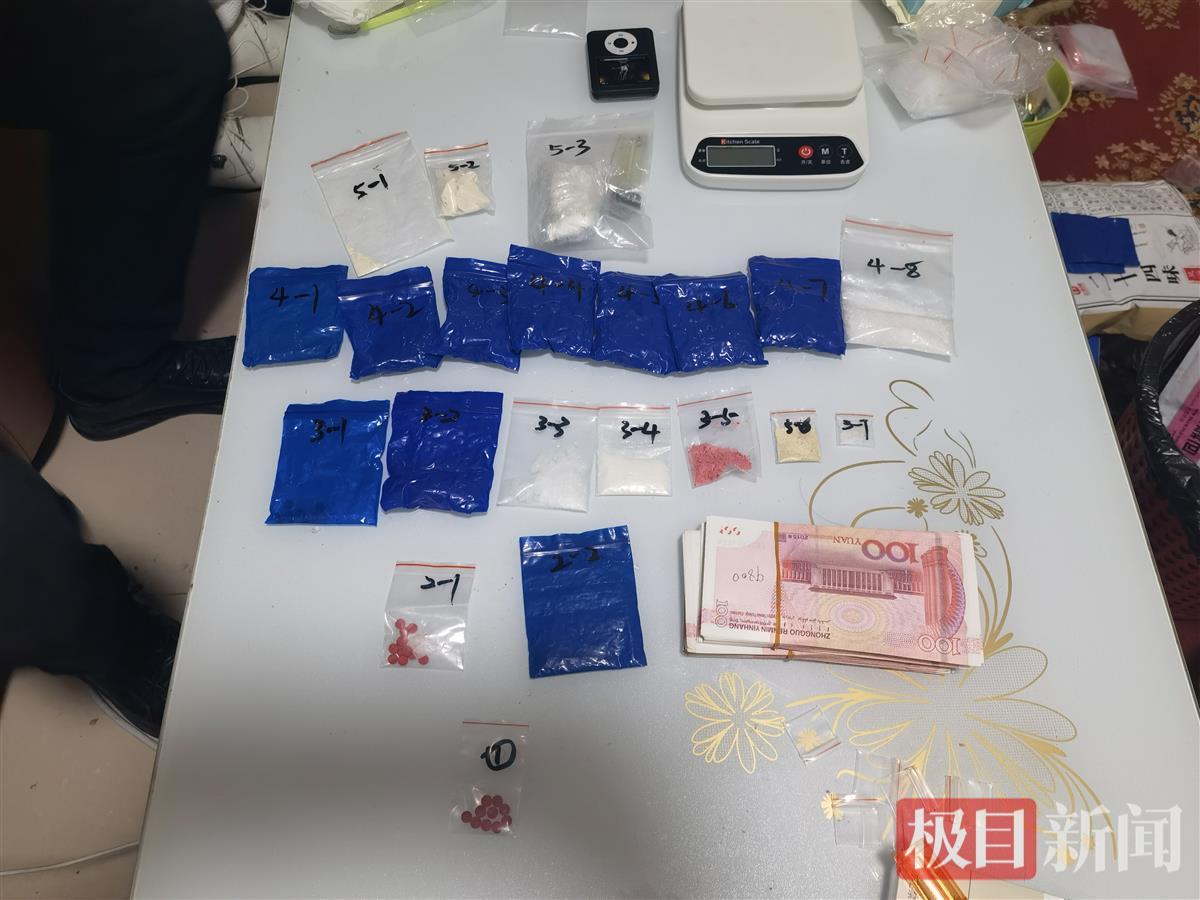 民警猜测,李某晚上会再次与他人进行交易,便蹲守在嫌疑人门外。果不其然,晚上10时李某再次出门,开门瞬间,民警立即将其抓获,在其身上查获毒品麻果10颗,在王某身上查获毒品麻果1800余颗,冰毒、海洛因30余克。