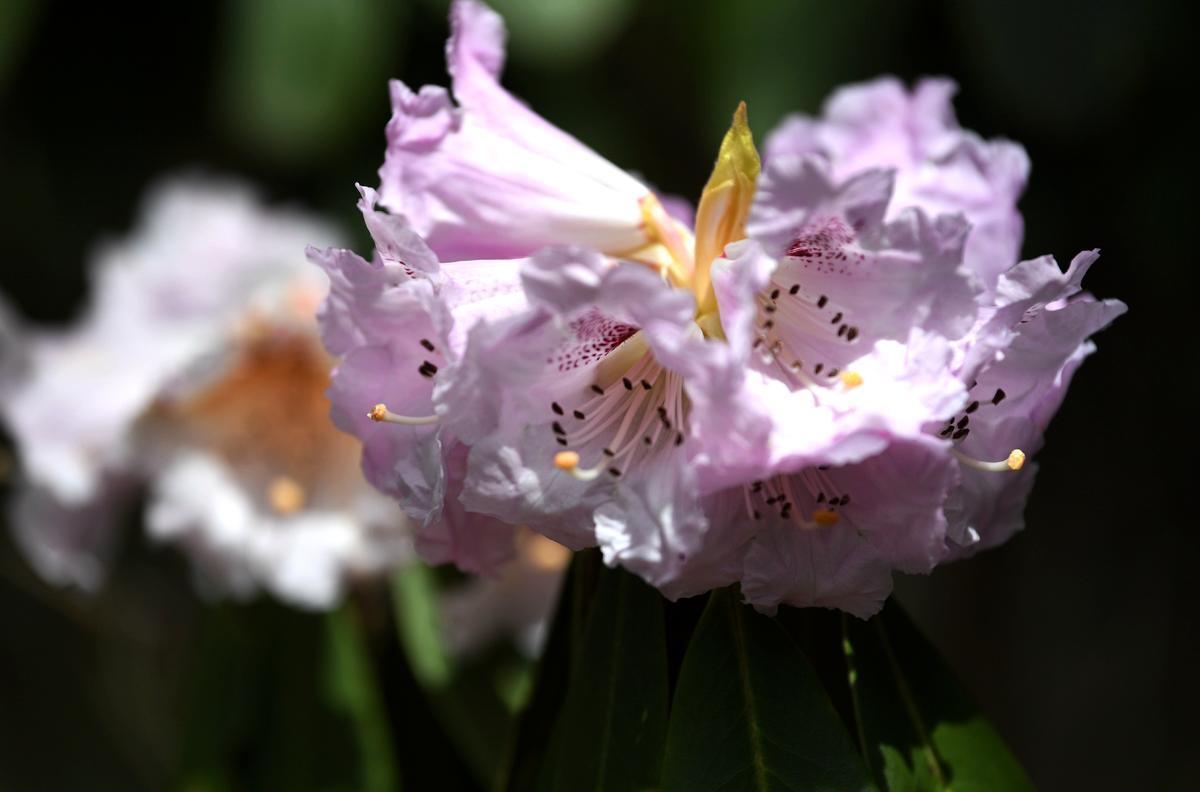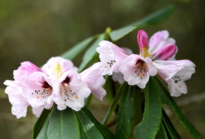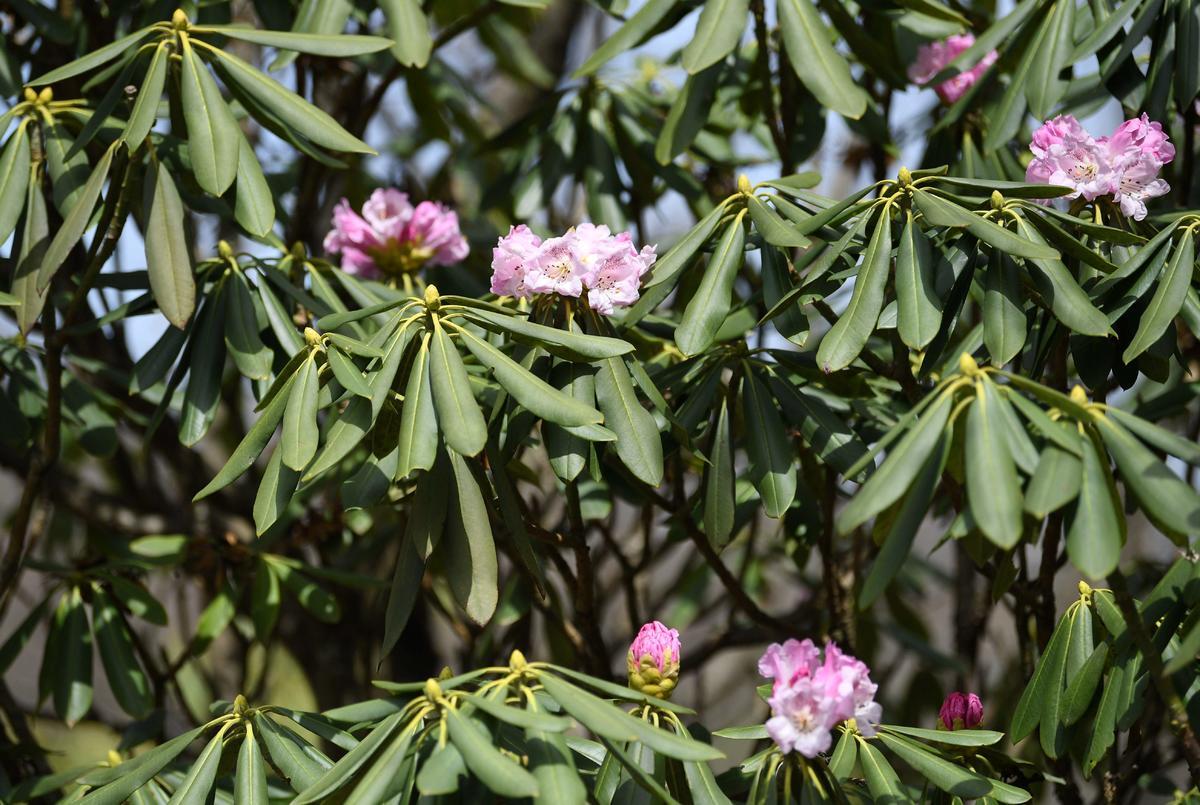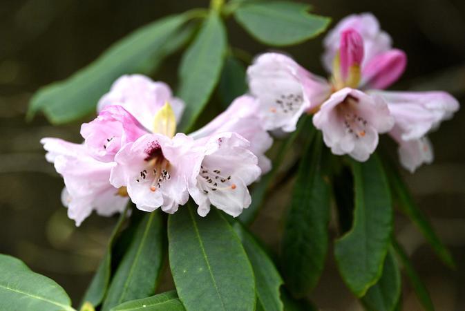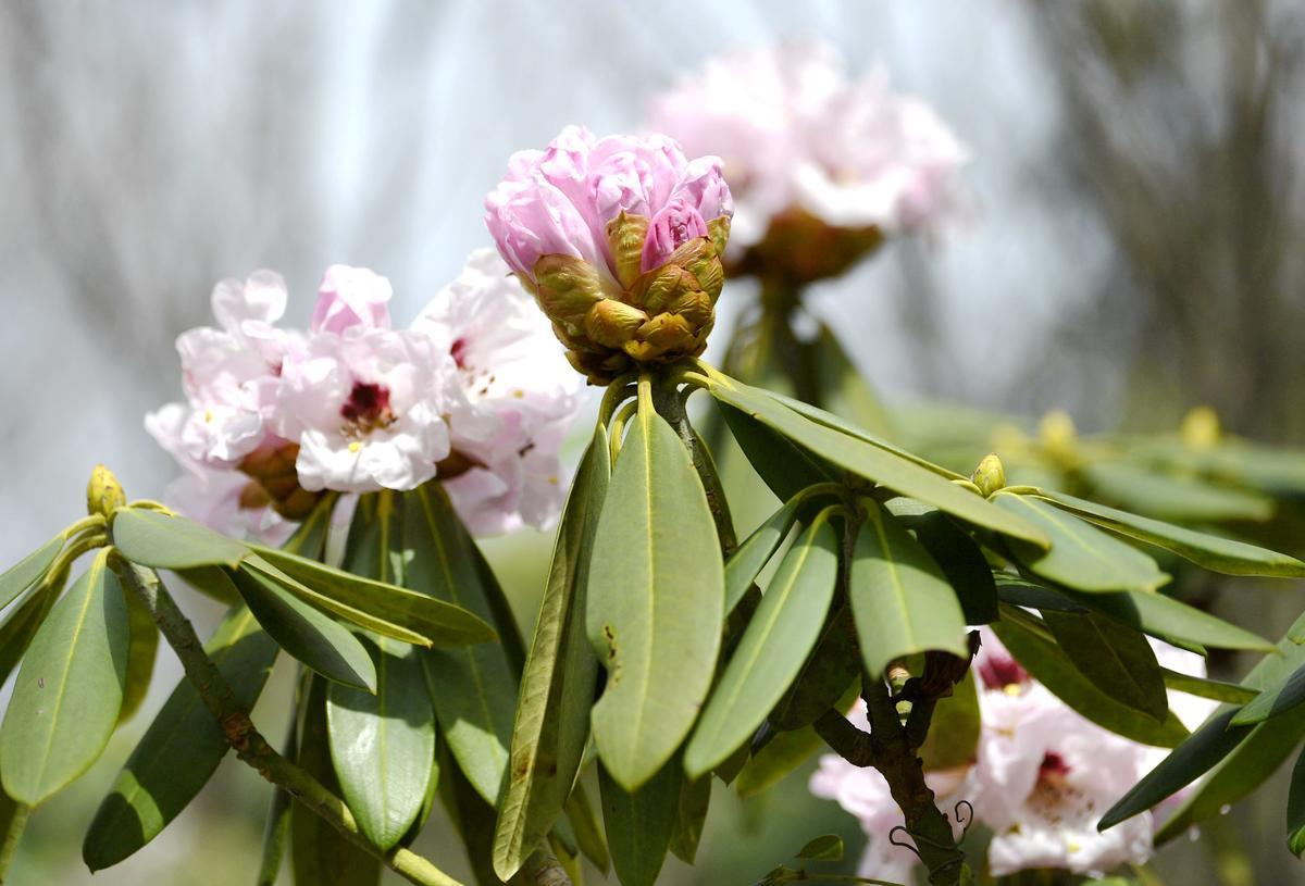 云锦杜鹃是我国特有的珍稀树种,是1600多种杜鹃花中的佼佼者。不同于别处的灌木杜鹃,保康云锦杜鹃大部分株体高达四五米,枝干有碗口粗细,树冠浑圆,形似枇杷叶,正面墨绿油亮。
