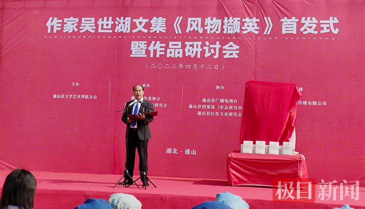 4月12日,由湖北咸宁通山县本土作家吴世湖创作的民间故事集《风物撷英》,在通山县人民广场举行首发式,随后进行了作品研讨活动。