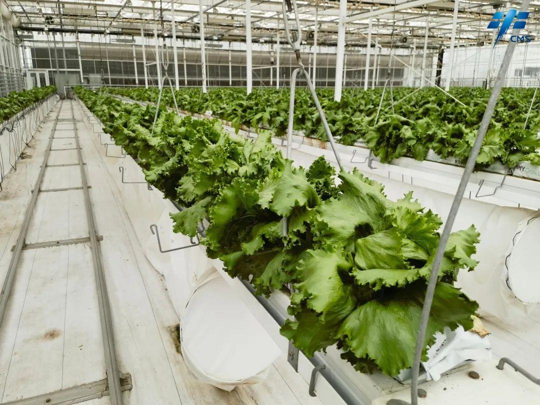 半封闭智能温室里种植的生菜