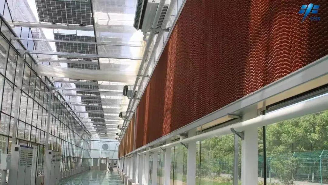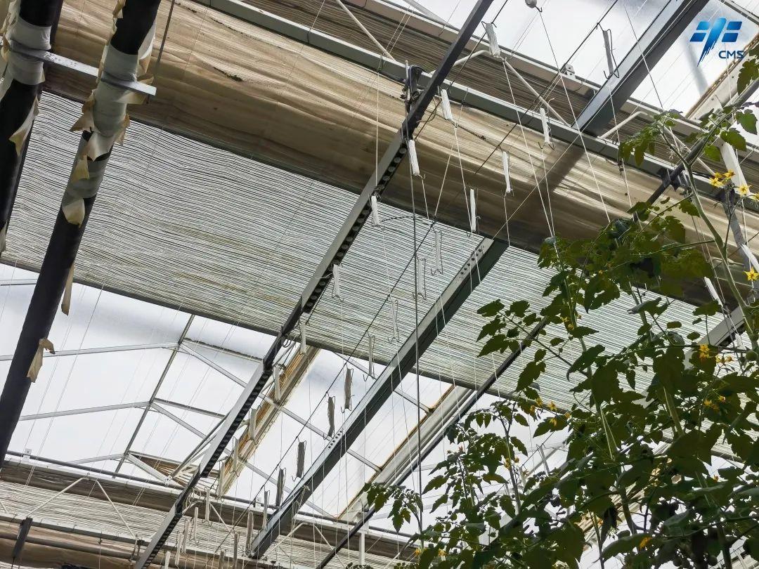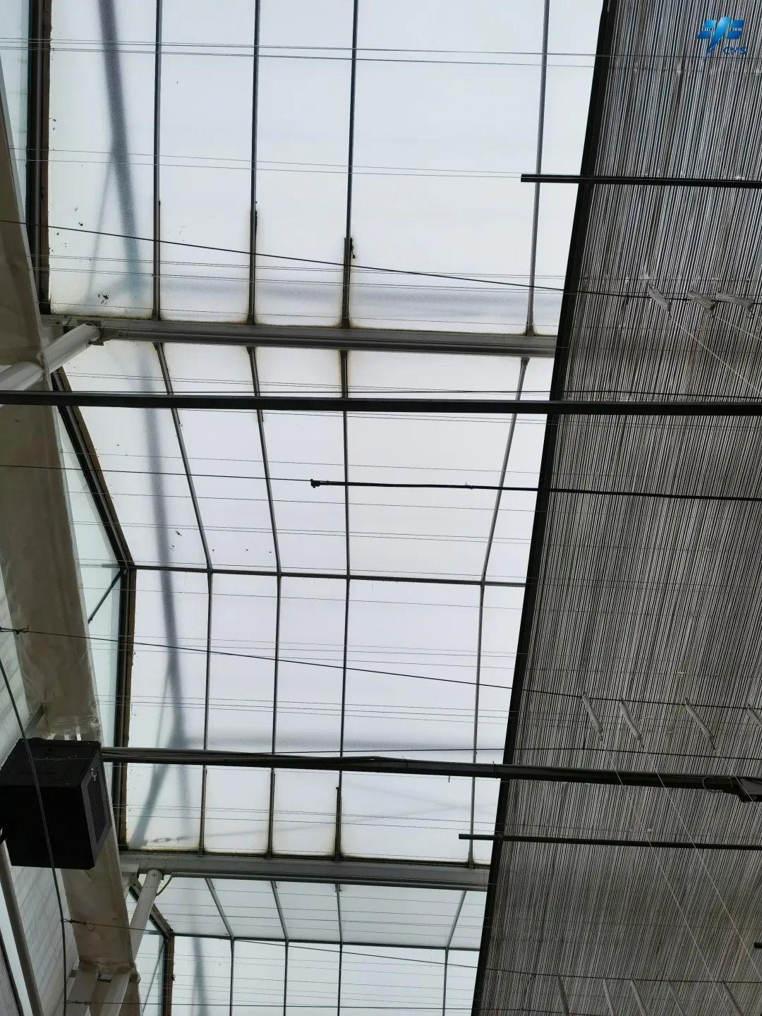屋脊玻璃具有高透光率、高散射特性,使温室内各个角度都有充足的光照;当光照过强时,温室顶部电动幕布遮阳系统开启,可防止温室内部由于强烈阳光照射而温度过高。