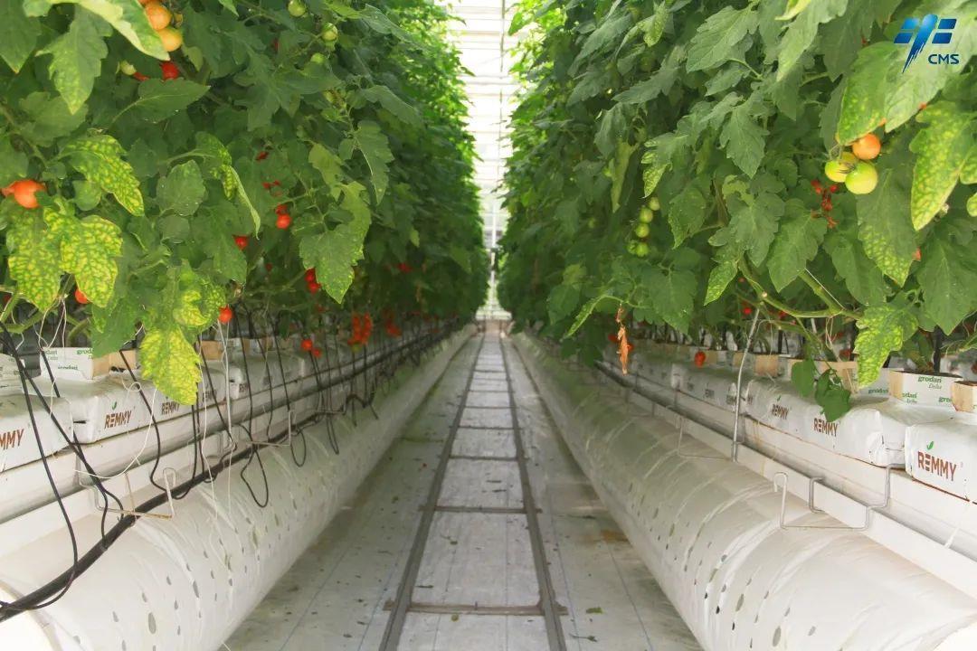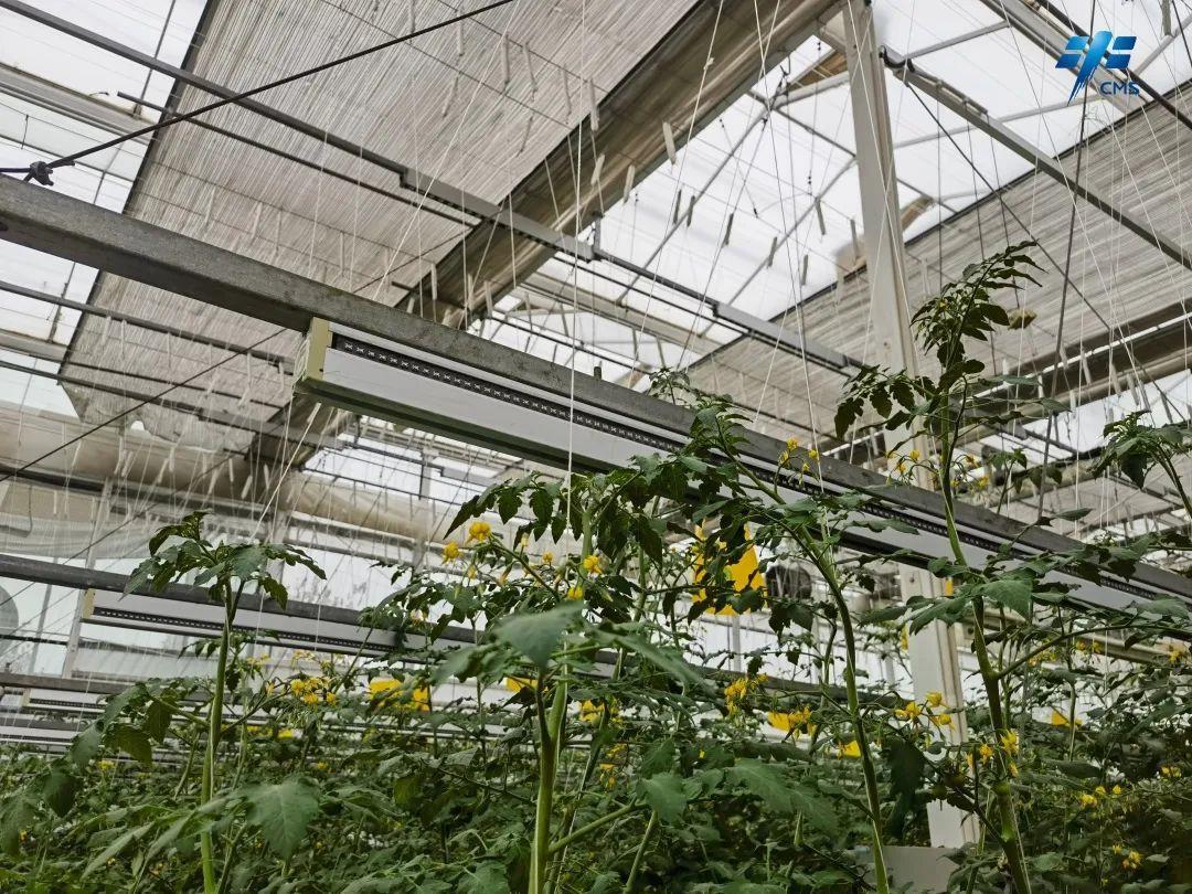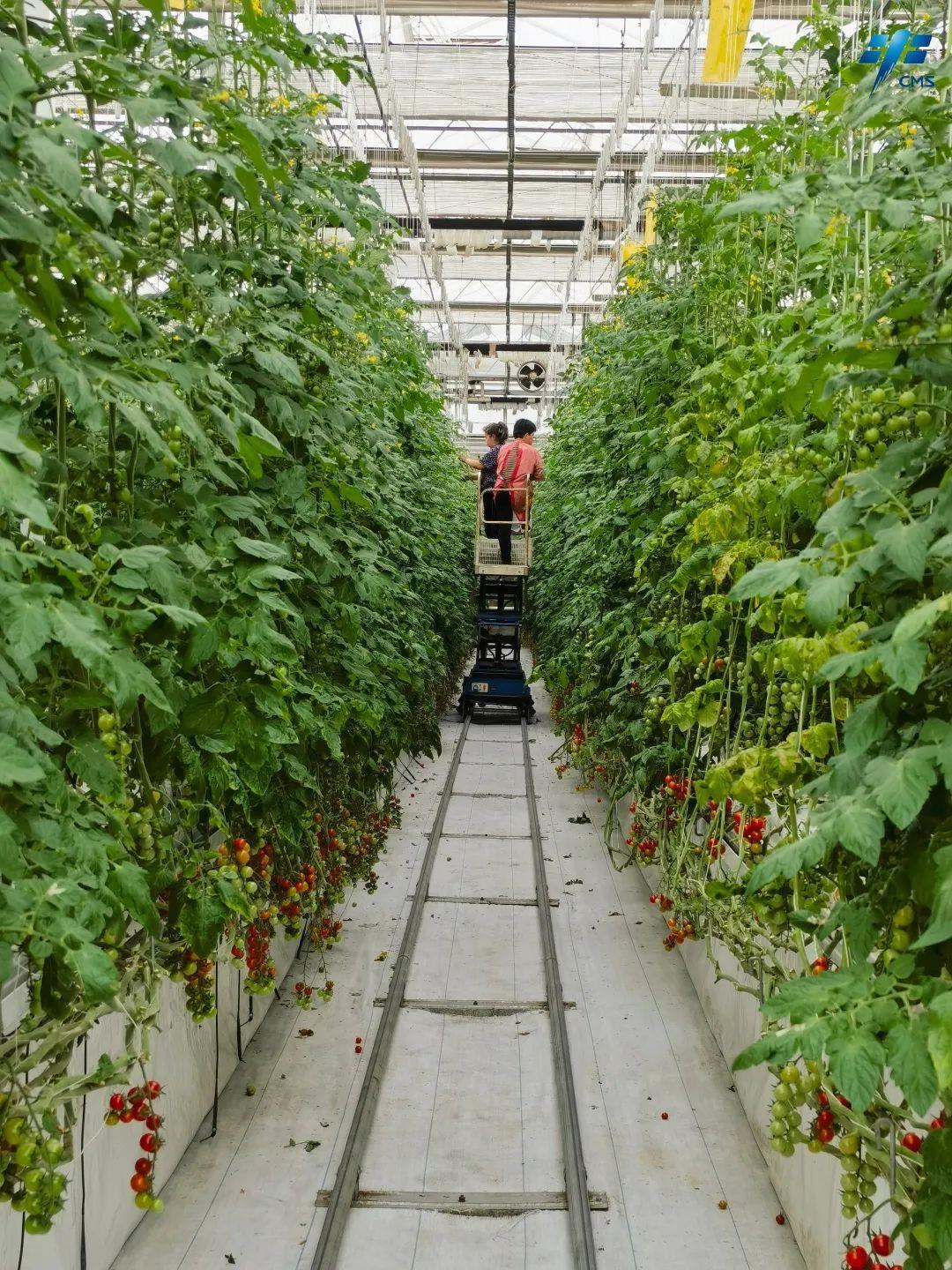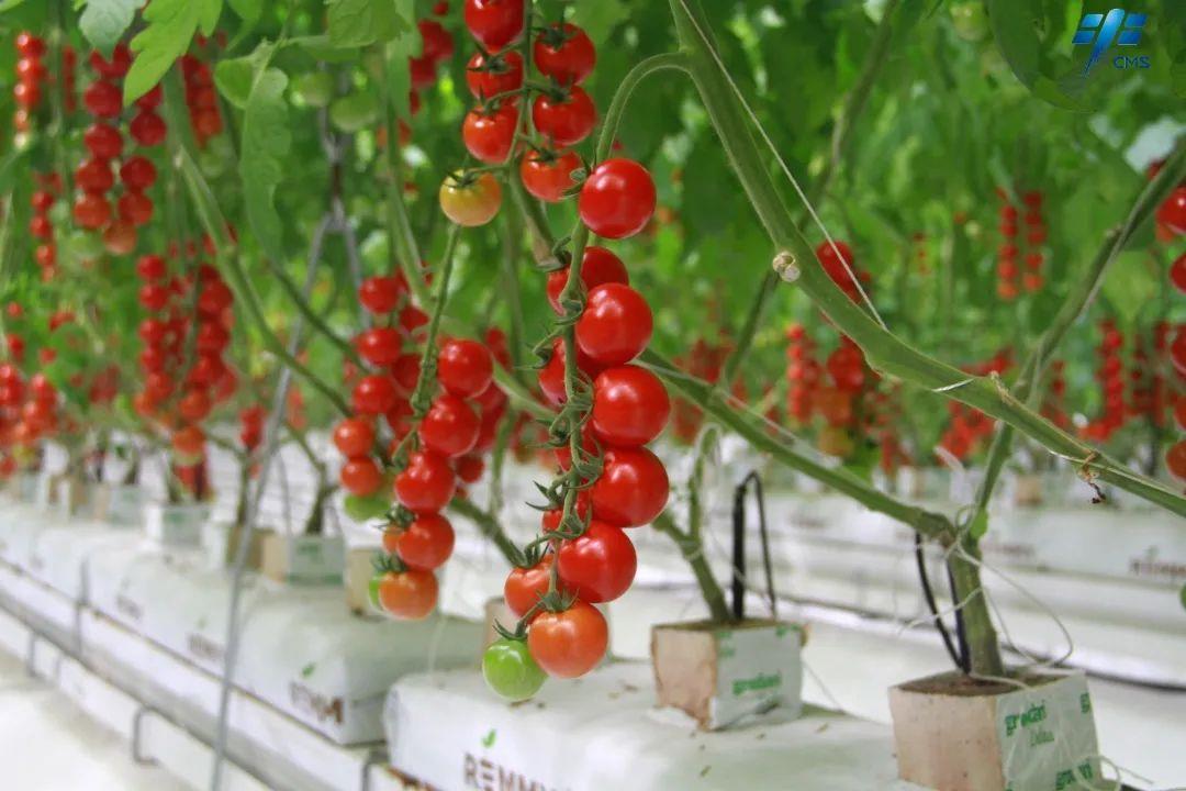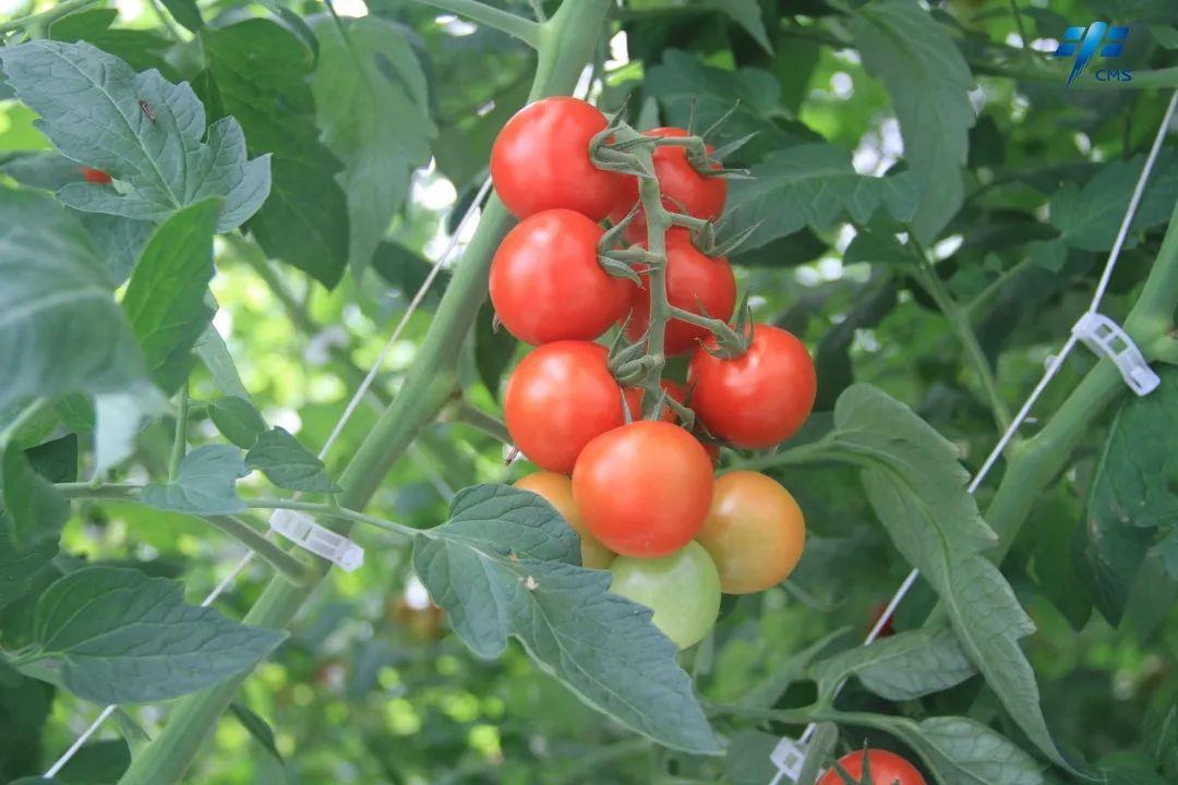 半封闭智能温室里生长的番茄