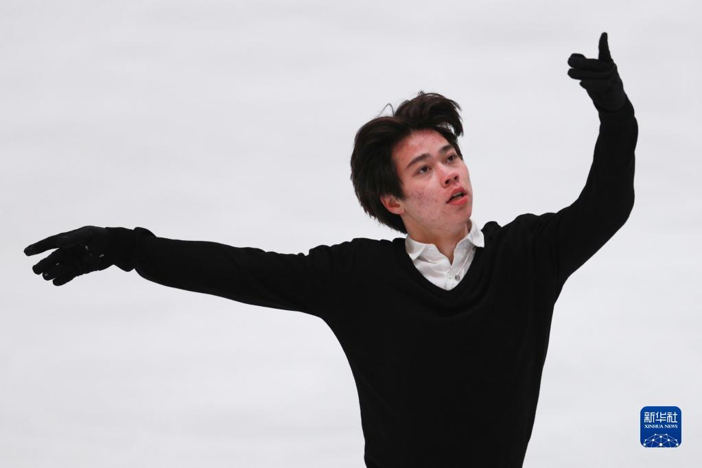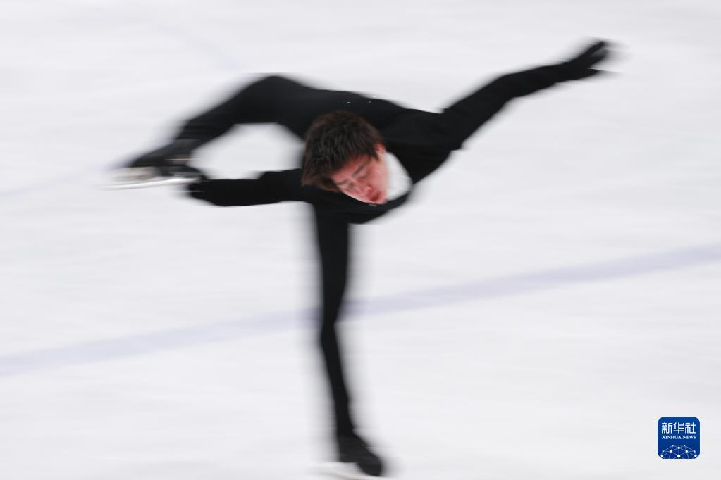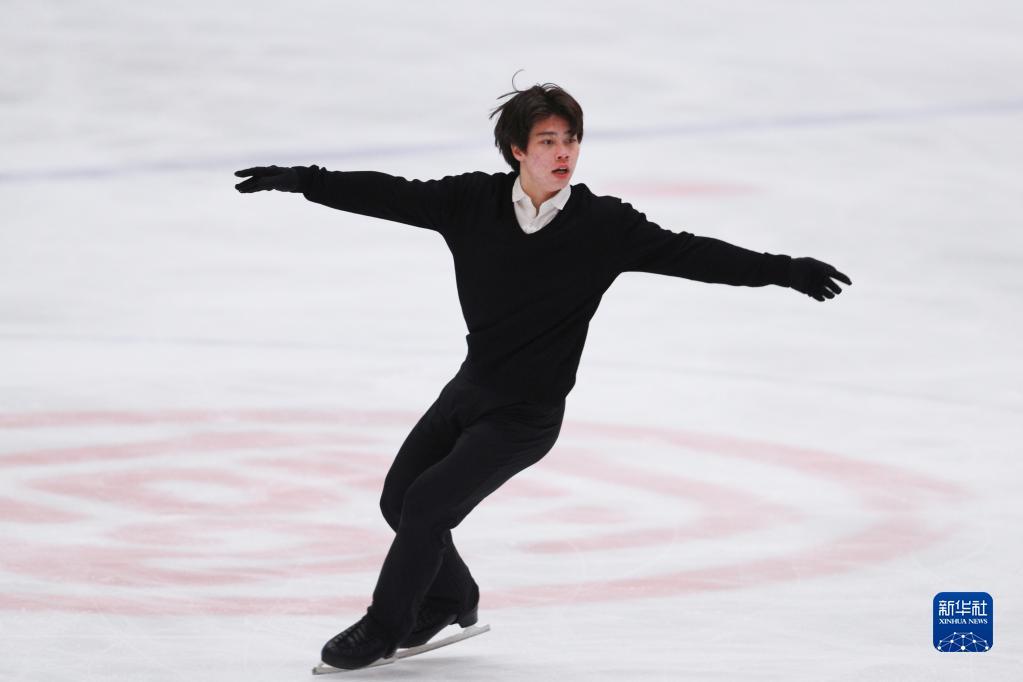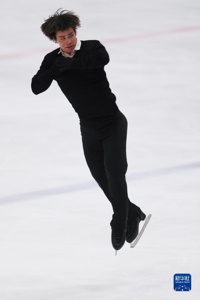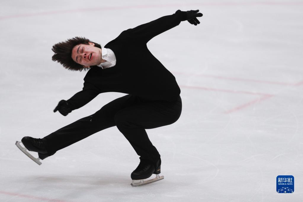4月13日,戴大卫在男子单人滑自由滑比赛中。新华社记者 许雅楠 摄