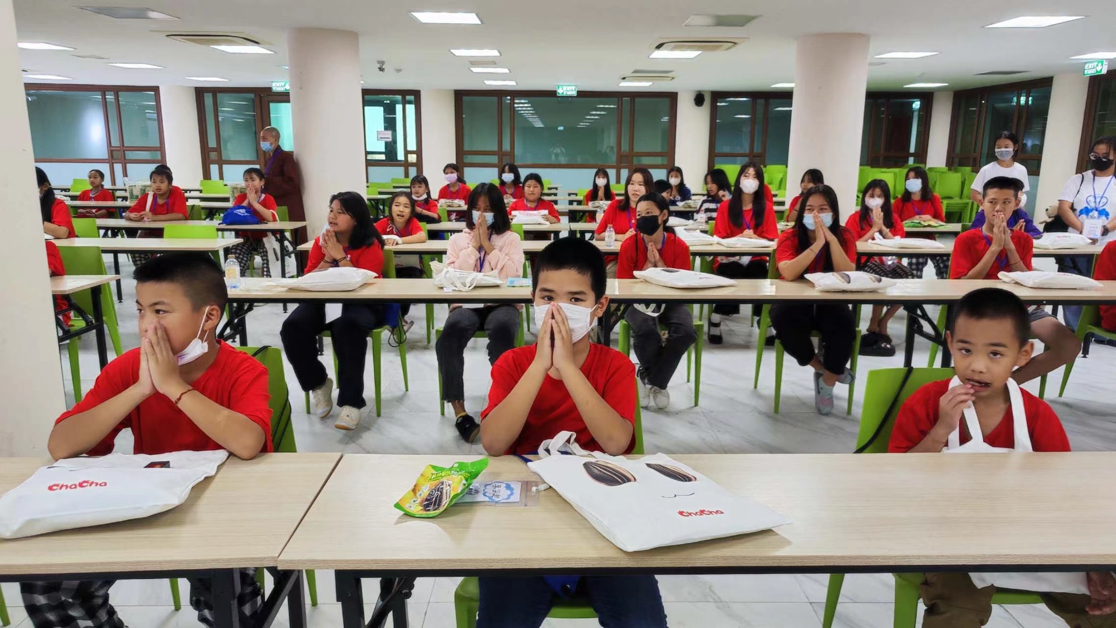清迈教联高级中学的学生收到中资企业捐赠的文具和食品。清迈教联高级中学供图