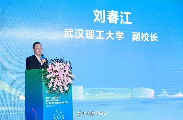 武汉理工大学副校长刘春江在致辞中表示,武汉理工大学高度重视人工智能产业的发展,开展多项学科项目研究,也希望通过这次活动可以促进湖北各高校人工智能研究的深入交流,并期待能够取得一定的探讨成果。