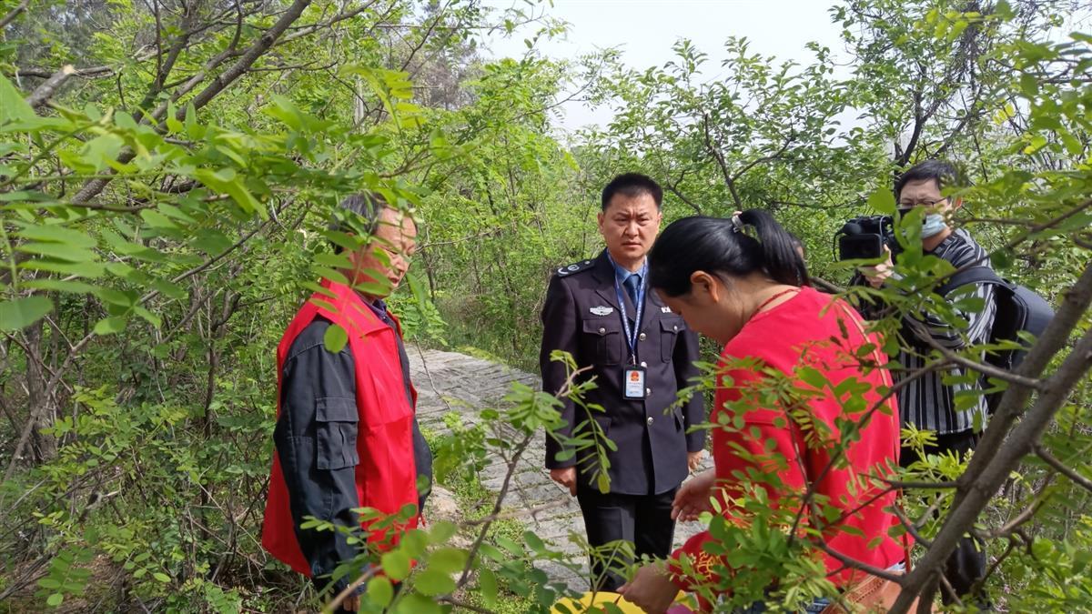 林业执法人员正对采摘槐花的市民进行批评教育 极目新闻记者关前裕摄