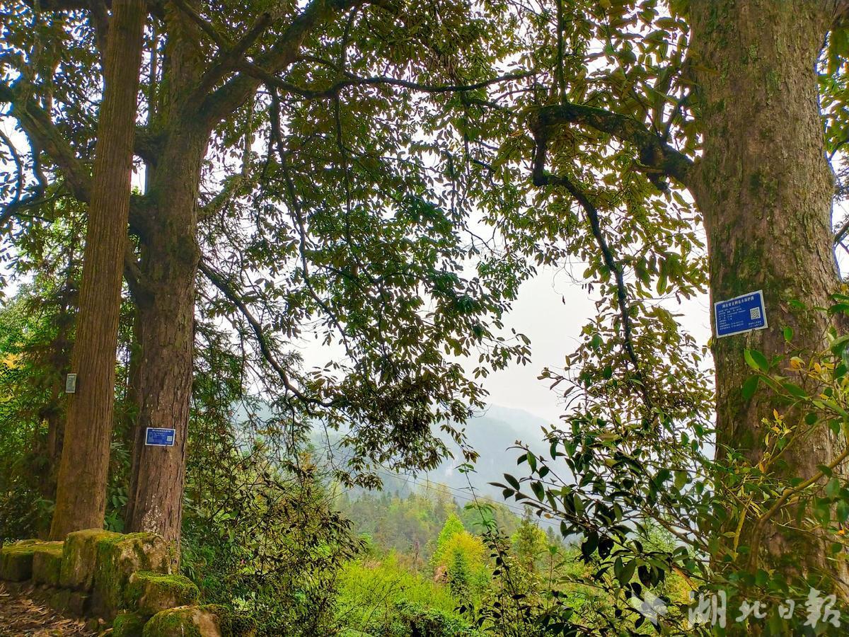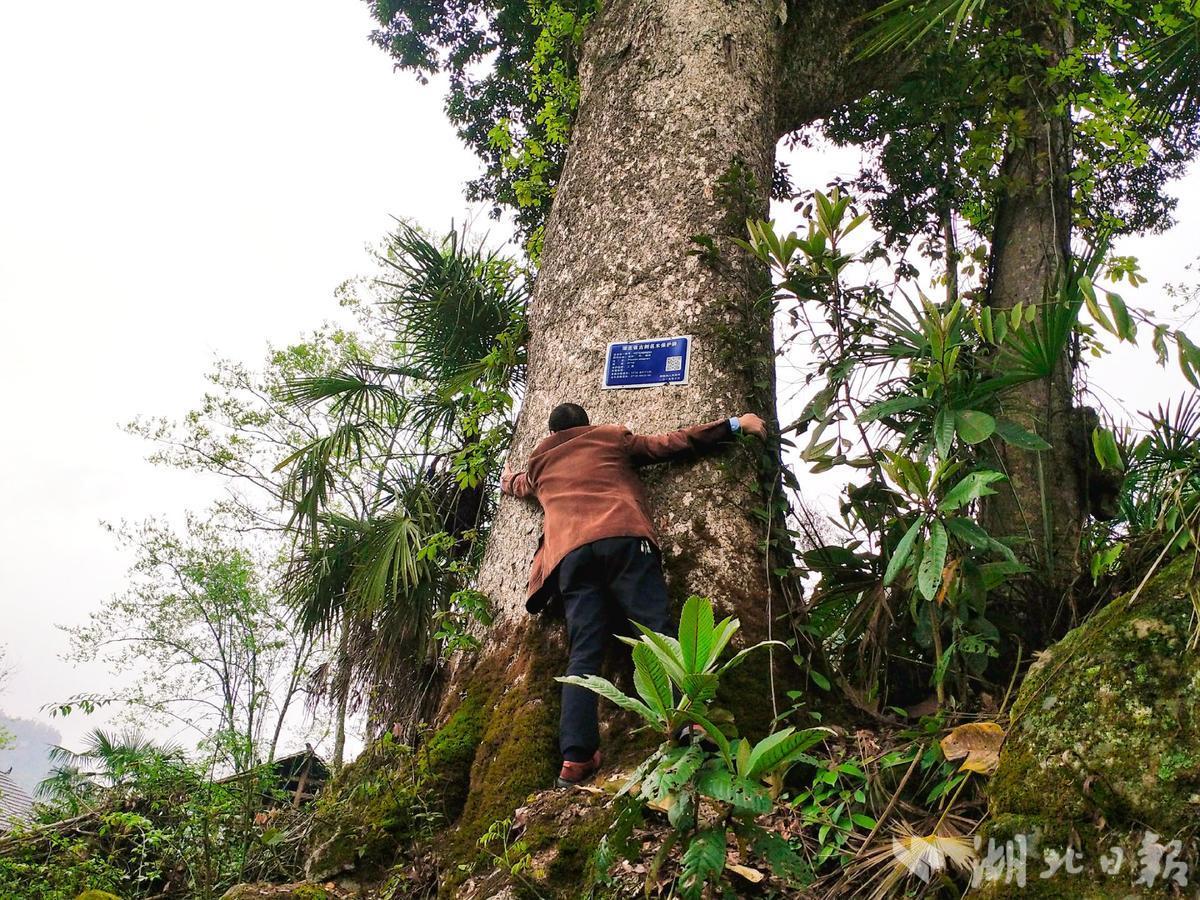 湖北日报客户端讯(通讯员黄锋 刘汉云) 4月13日,咸丰县清坪镇林长办工作人员到比西坪村开展森林资源巡查时,发现一个小地名叫马坡龙的地方,在方圆不足一亩的土地上,长着10株挂有《湖北省古树名木保护牌》的古树,古树之间最长距离不足100米,最短距离仅1米。其中300年至499年的国家二级保护古树3株,100年至299年国家三级保护古树7株。最引人注目的是一株长在乱石之中的紫楠,树高约20米,胸径超过150 厘米,枝丫粗壮,其叶蓁蓁,远远望去,伟岸挺拔,显得格外醒目。