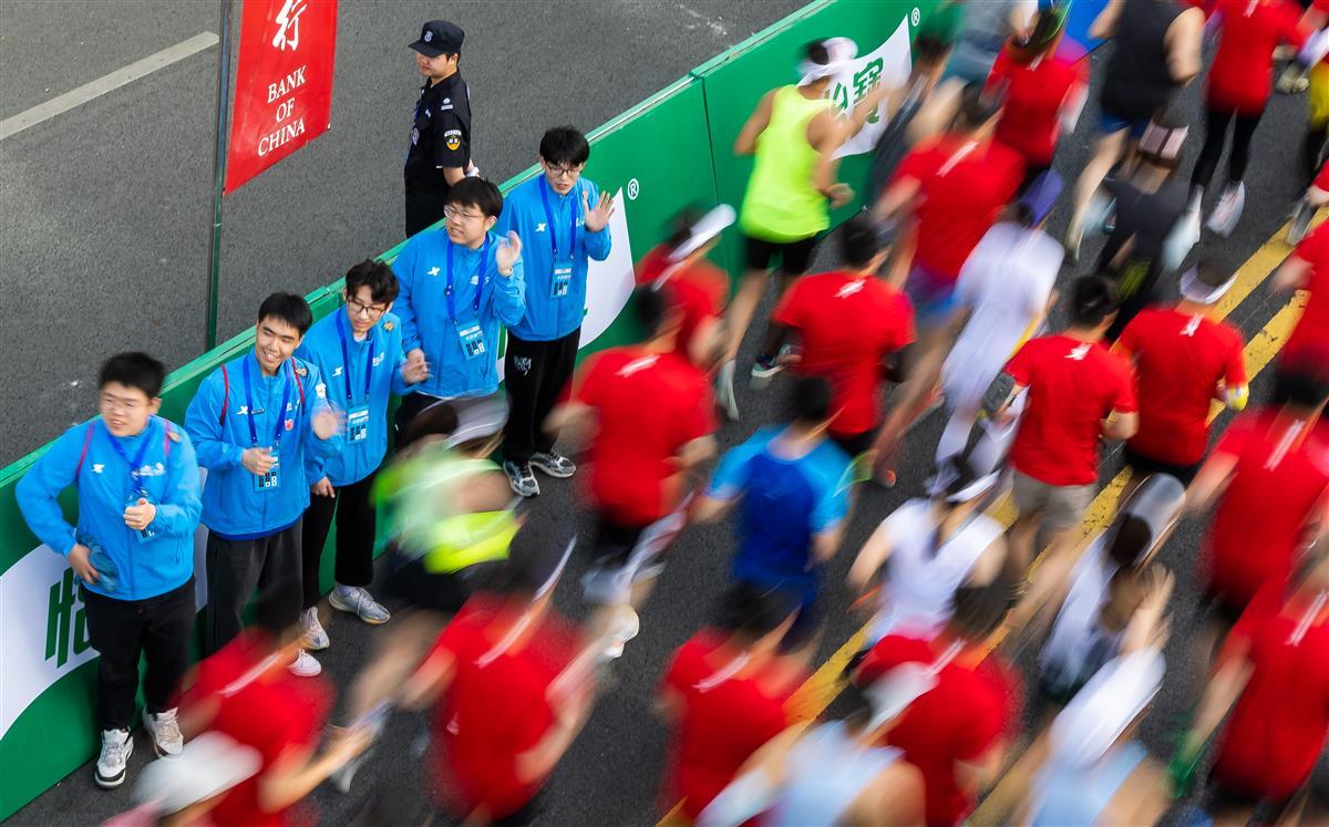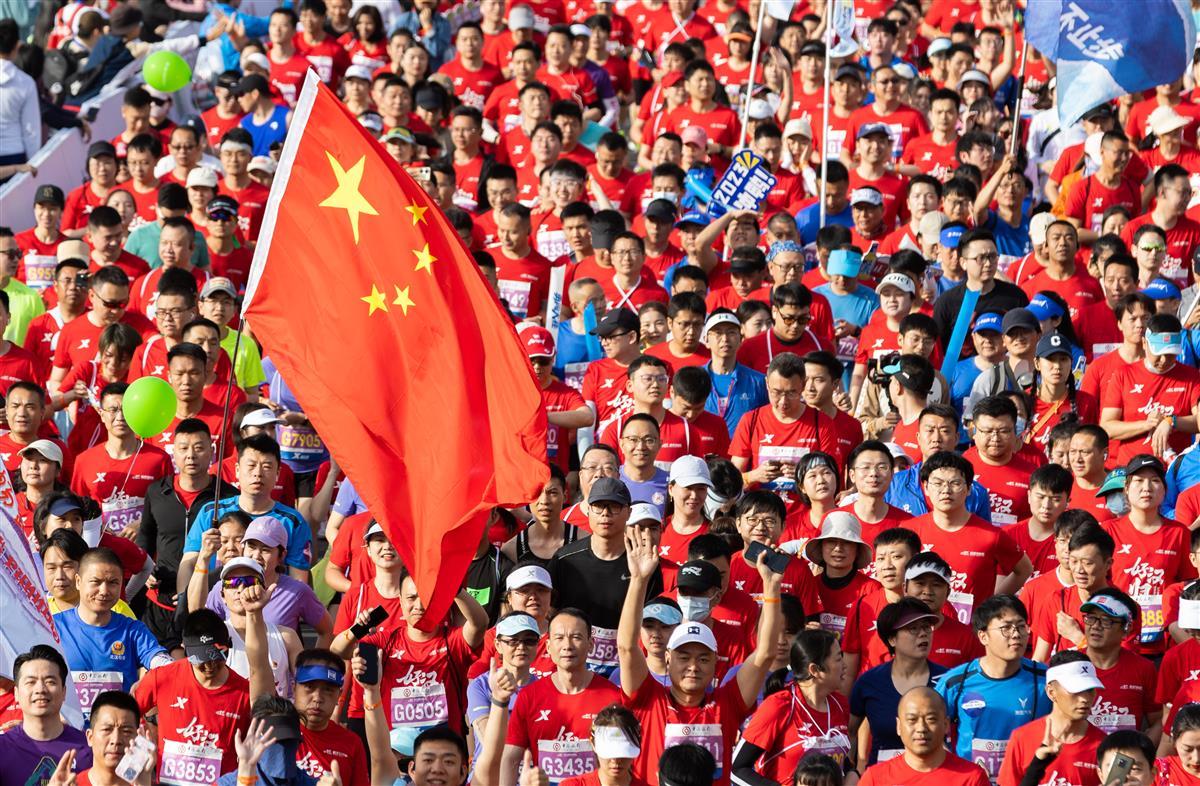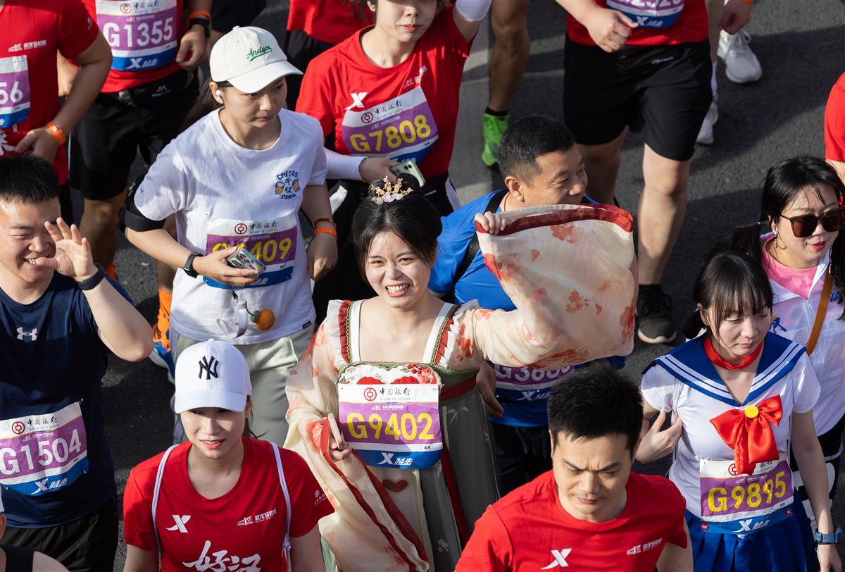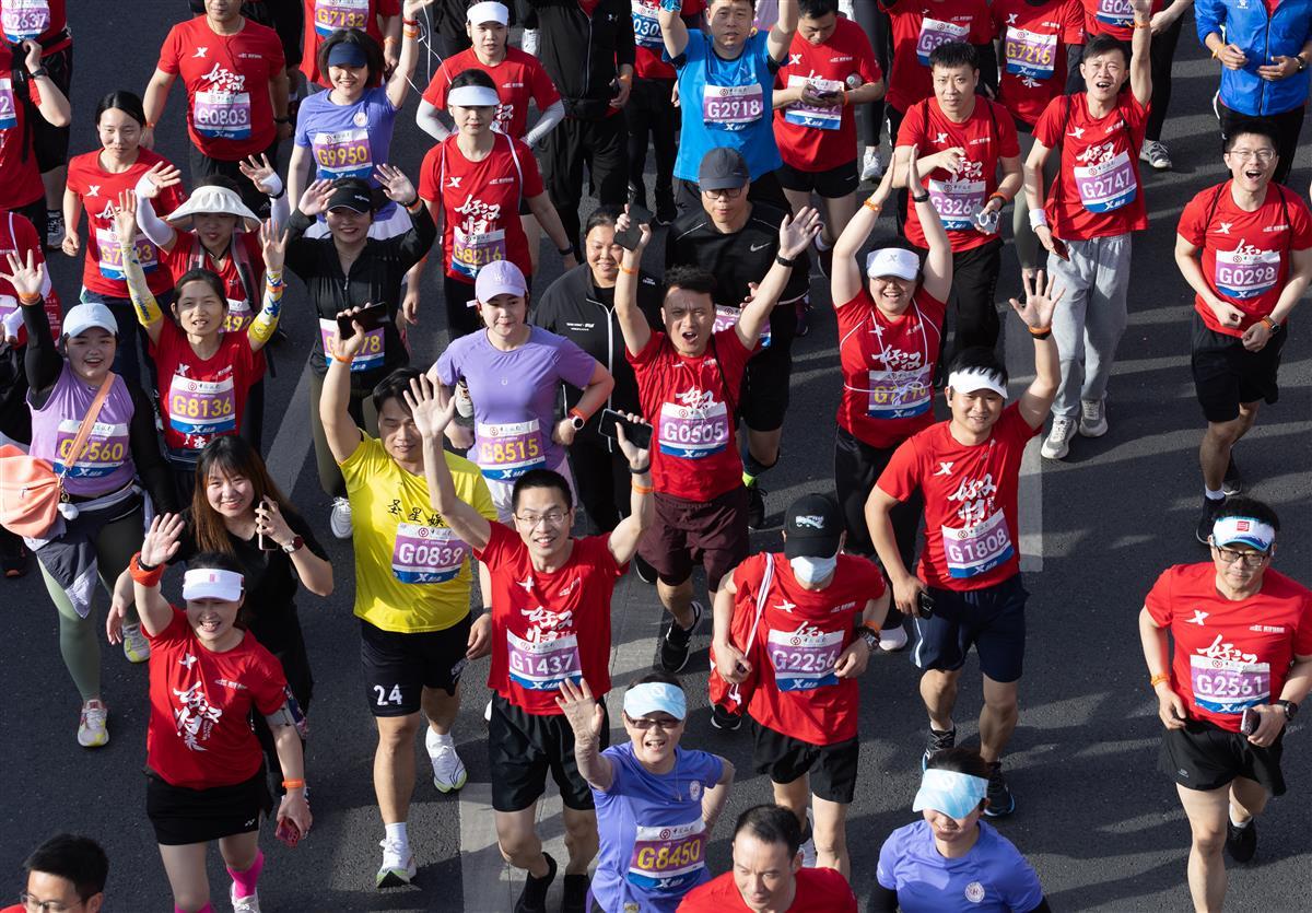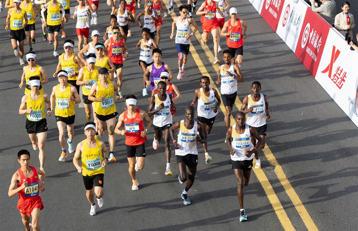 4月16日7时30分,2023武汉马拉松在汉口江滩开跑。2023武汉马拉松有2.6万名选手参赛,其中全程马拉松8000人,半程马拉松10000人,13公里跑8000人。(湖北日报全媒记者柯皓摄)
