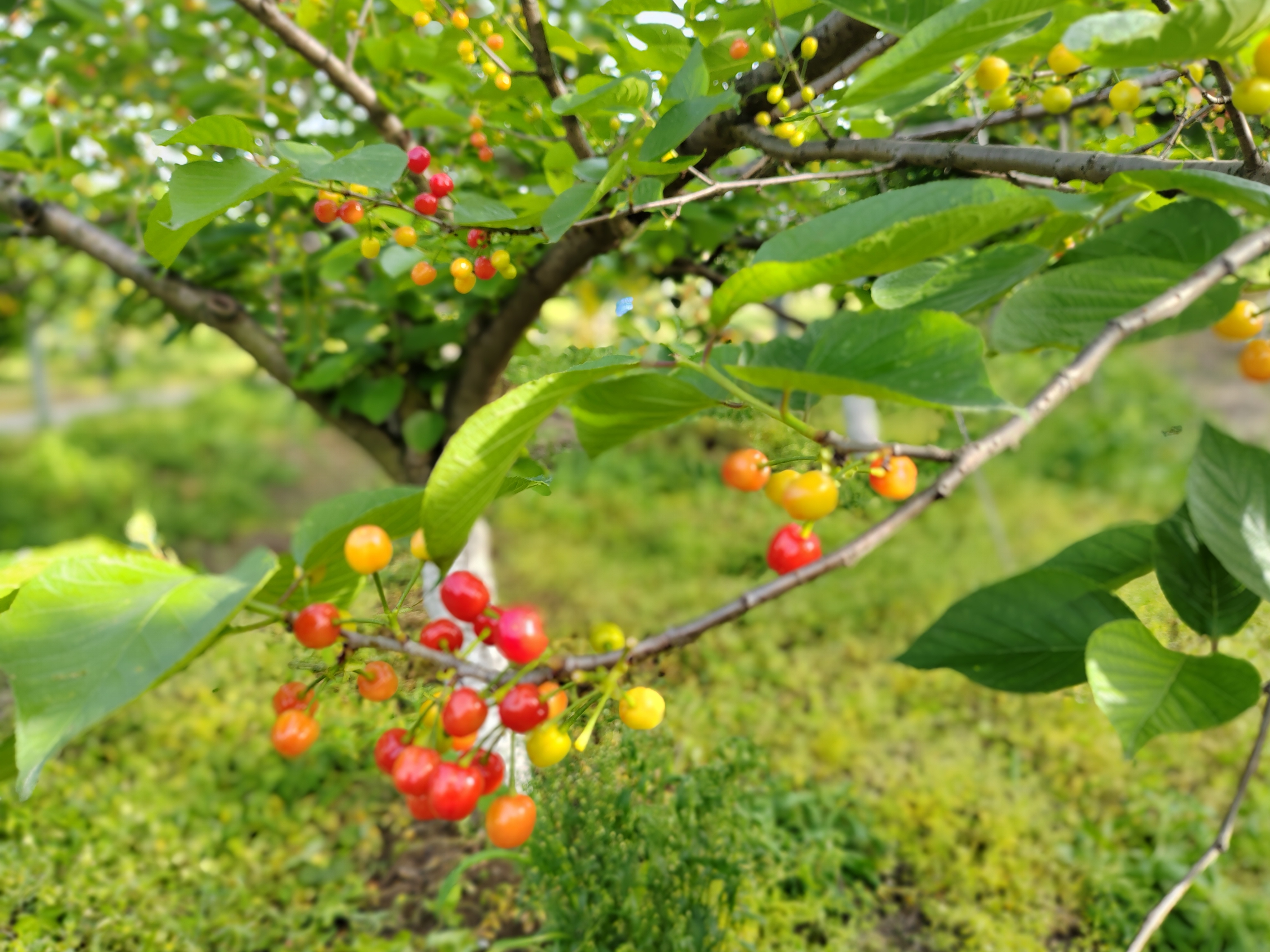 樱桃树长大了,枝丫只往上蹿,他就修枝控旺,想办法压低枝条;
