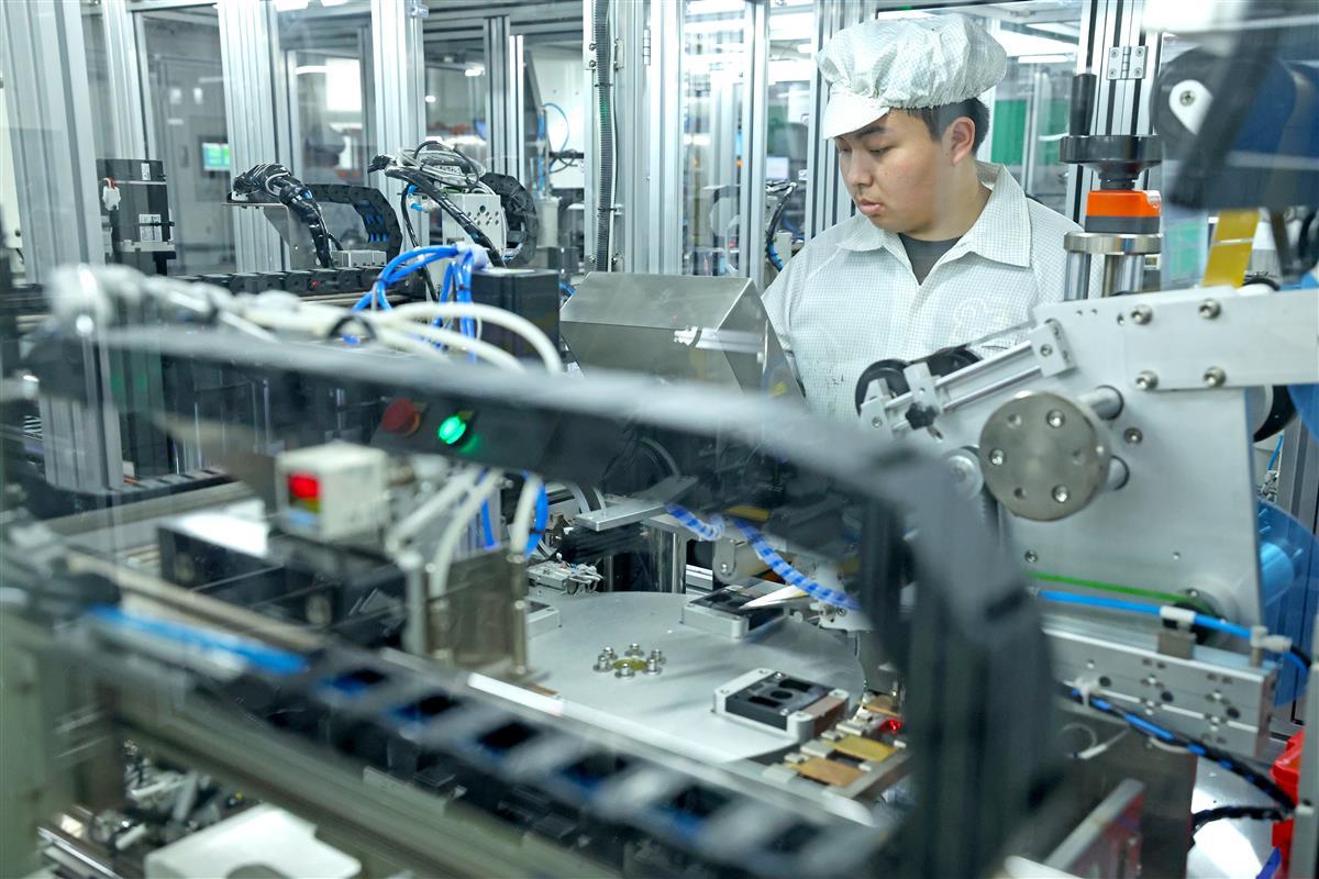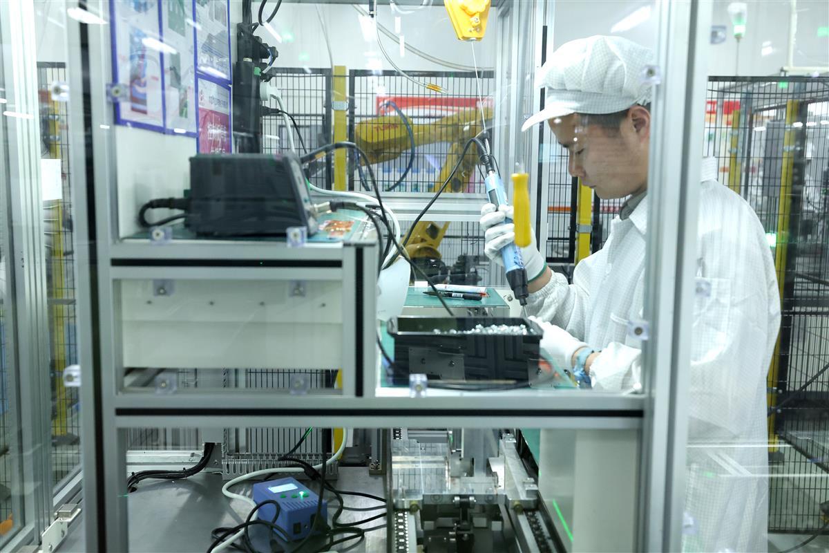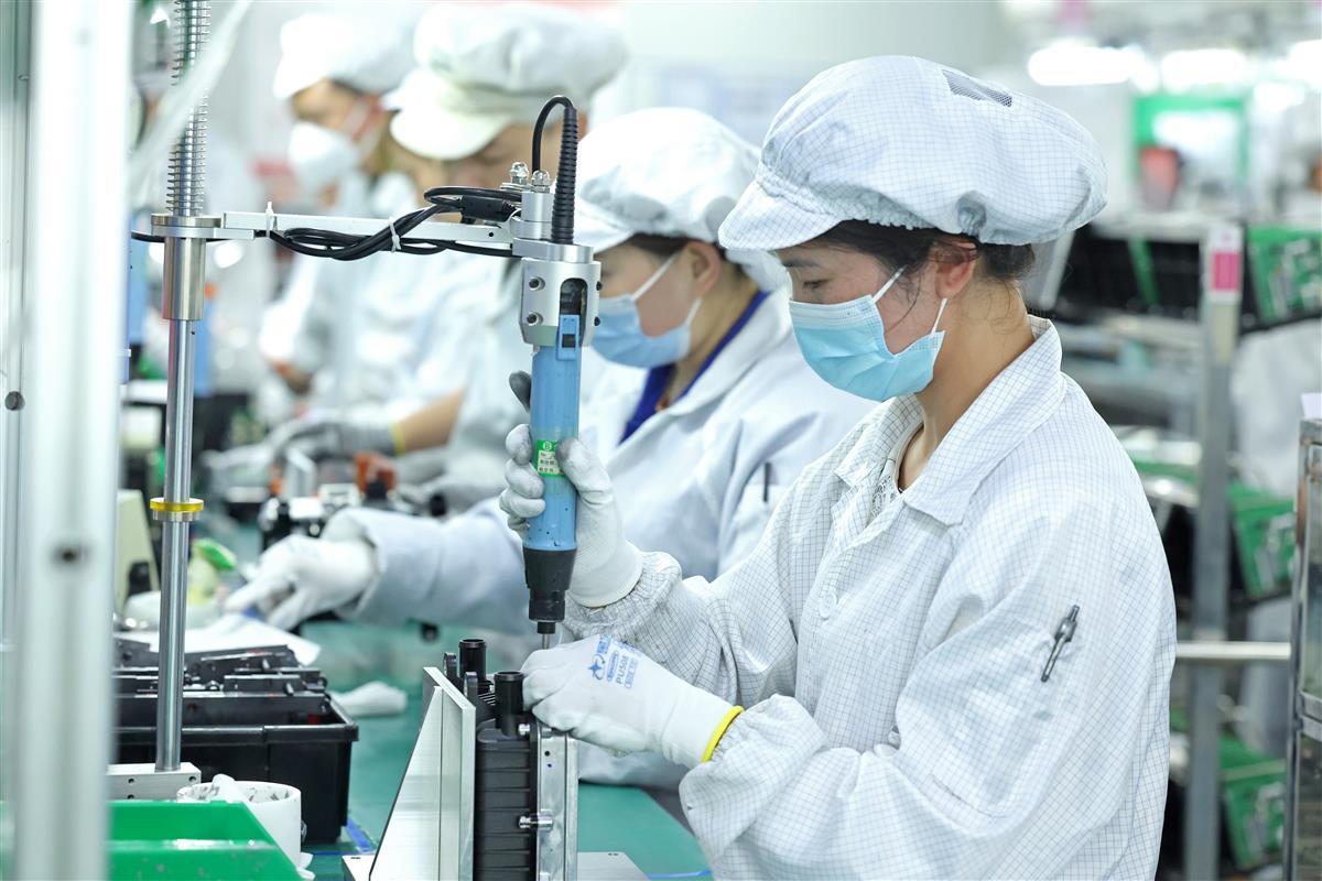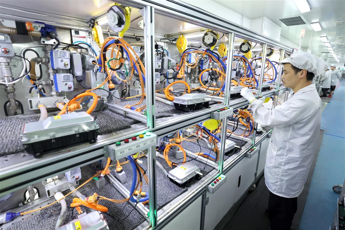 4月13日,在位于孝感高新区的华工高理电子有限公司PTC水加热器自动化生产车间内,5条生产线马力全开,员工在产线上加紧生产。据介绍,该公司上季度销售额同比增长48%,本季度将加速扩能提产。目前公司新能源汽车PTC加热器占到国内市场60%份额,已覆盖所有新能源汽车品牌,下一步该公司全球最大新能源汽车PTC加热器制造基地即将投产,新能源汽车PTC加热器年产能将新增500万套。(湖北日报全媒记者倪娜通讯员任茜茜张园摄)