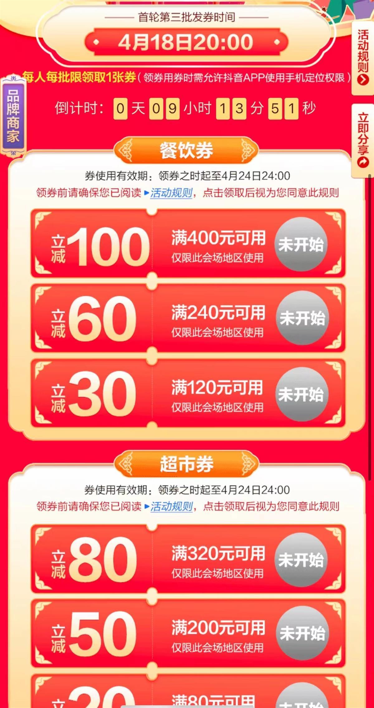 需要提醒的是,活动期间,省内消费者(抢券时手机GPS定位在湖北省17个市州地域范围内的人员)按所在市州区域抢券,抢领的消费券限抢券当地使用,不支持跨市州区域使用。消费券使用截止日期为投放当日开始计算的第7个自然日午夜24时,逾期作废。如4月18日20:00投放的消费券,使用截止时间为4月24日24时。消费者抢领并使用后发生退款的消费券自动作废。