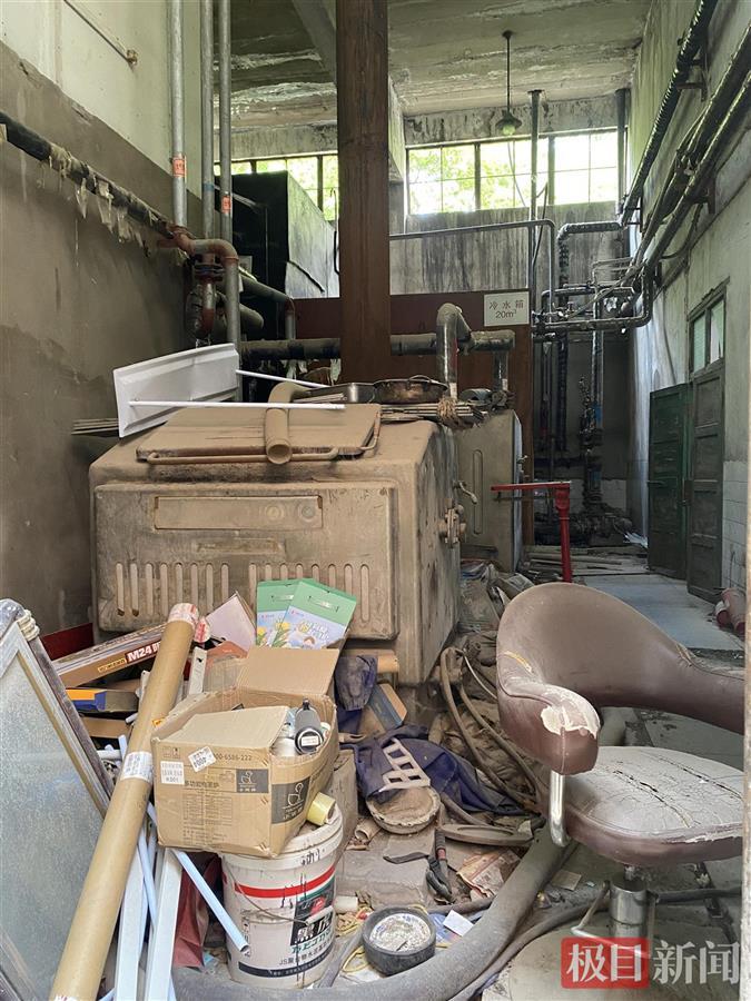 然而讽刺的是,整个院子的杂物几乎都堆放到了此处。除了9个大垃圾桶的垃圾堆成山,地上的泡沫、木板、塑料、旧沙发、座便器等堆得满满当当。而消防泵房里面,同样堆放着纸箱、塑料桶、椅子等垃圾,落了厚厚一层灰,泵房传出嗡嗡的运作声。记者三次探访该处,同样的垃圾一直无人清理。