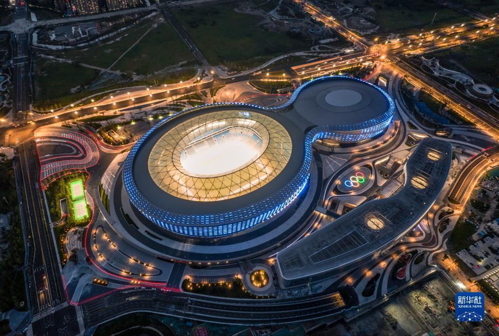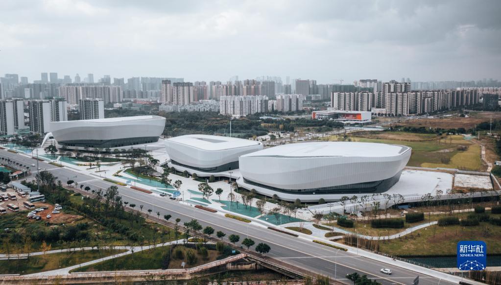 这是2021年10月22日拍摄的成都高新体育中心体育馆(左),成都大运会乒乓球项目的比赛将在这里举行。新华社发(成都大运会执委会供图)