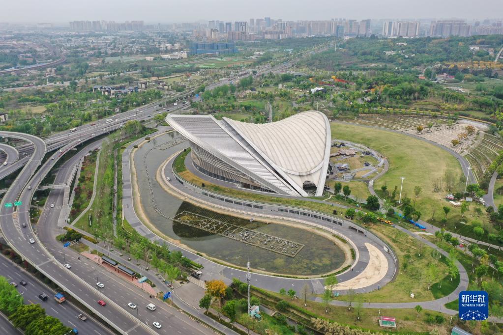 这是2023年4月18日拍摄的东安湖体育公园游泳跳水馆,成都大运会游泳项目的比赛将在这里举行。新华社记者 沈伯韩 摄