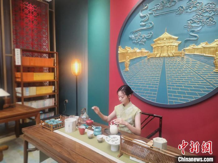 中新网沈阳4月19日电(记者 赵桂华 王艺霖)中式园林的实景幕墙掩映着古风桌椅、宫廷地灯、中式书架等微景观,让读者畅游书海的同时,仿佛置身中国古代书院书房之中。