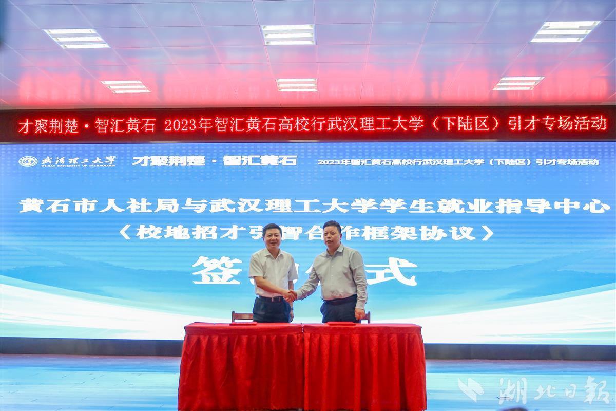 湖北日报讯(记者龚雪、通讯员黄人才)4月19日,黄石市联合武汉理工大学举办2023年“智汇黄石高校行”武汉理工大学(下陆区)引才推介会暨人才项目签约活动。