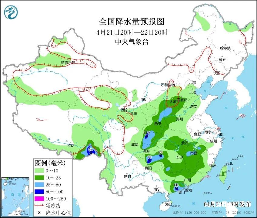 中央气象台预计,21日20时至22日20时,西藏东南部、西北地区东部、华北西南部、西南地区东部、江汉东部、江南西部和中部、华南北部和南部等地部分地区有中到大雨,其中,西藏东南部、四川东北部、贵州中部和东北部、广东西南部等地部分地区有暴雨或大暴雨。