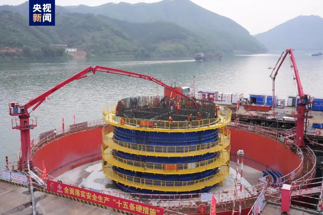 21日,世界最大跨径三塔空间缆地锚式悬索桥——苍容浔江大桥中塔首节塔柱顺利浇筑。