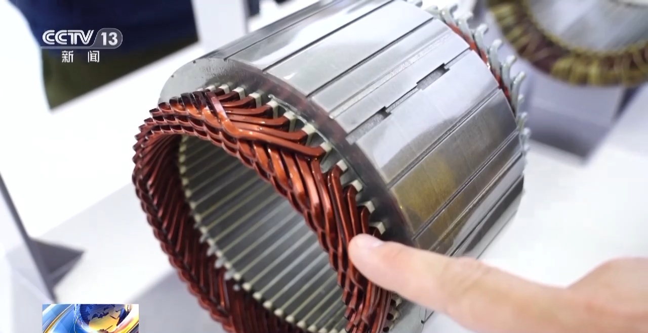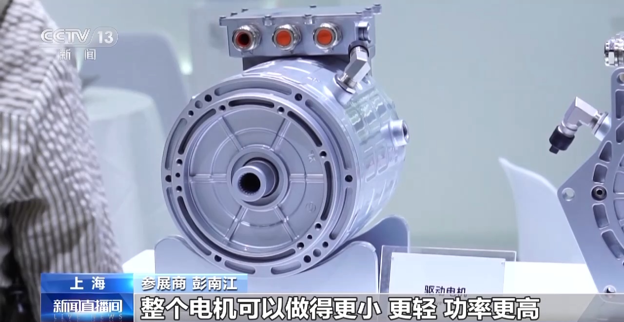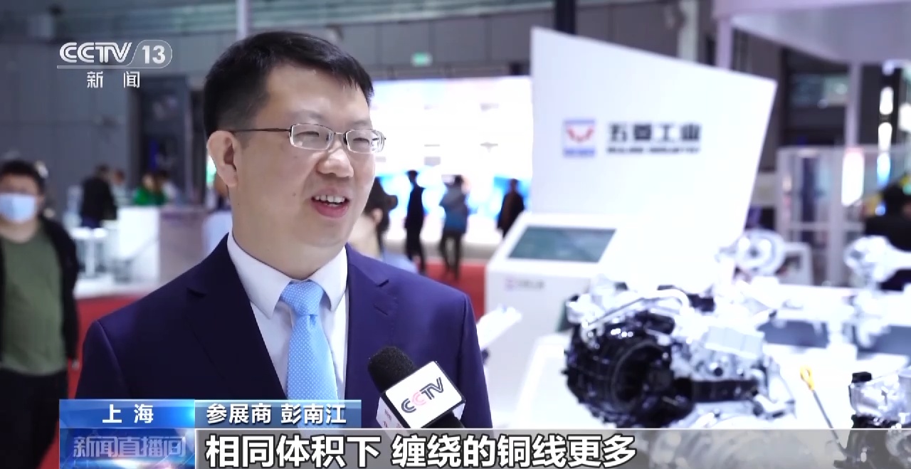参展商 彭南江:相同体积下,缠绕的铜线更多,它的能量密度就提升了30%以上,整个电机可以做得更小、更轻,功率更高。