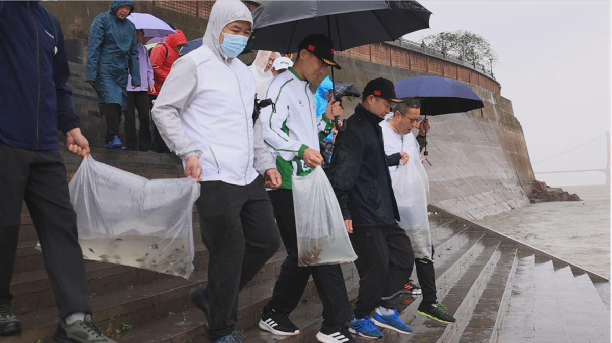 4月22日,第54个世界地球日。武汉市武昌区退役军人事务局组织退役军人“长江卫士”志愿服务队和武汉音乐学院的应征青年一起,在长江边开展珍稀鱼苗放流活动。在现场,共有1万多尾优质鱼苗被投放到长江。退役军人滕增贵说:“参加长江大保护活动,修复自然、保护环境,我们退役军人责无旁贷。”