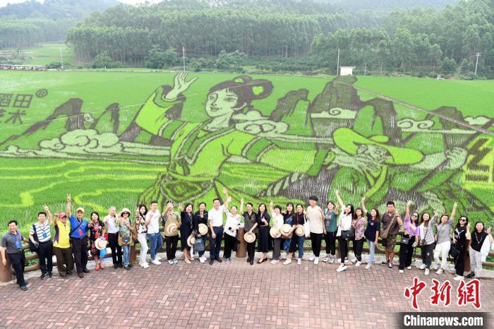 图为出席活动的嘉宾在稻田艺术景区合影留念。 蒋雪林 摄