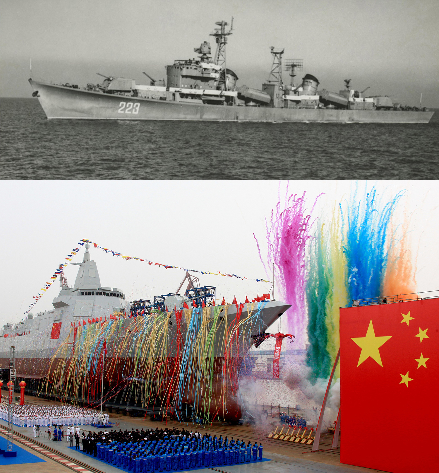 第一艘051型导弹驱逐舰。1968年12月,中国自主研制的第一艘051型导弹驱逐舰开始建造,1970年7月30日下水(舷号223,后改为105),排水量3500吨,是中国第一代中型水面舰艇。1986年8月19日,该舰被命名为济南舰。