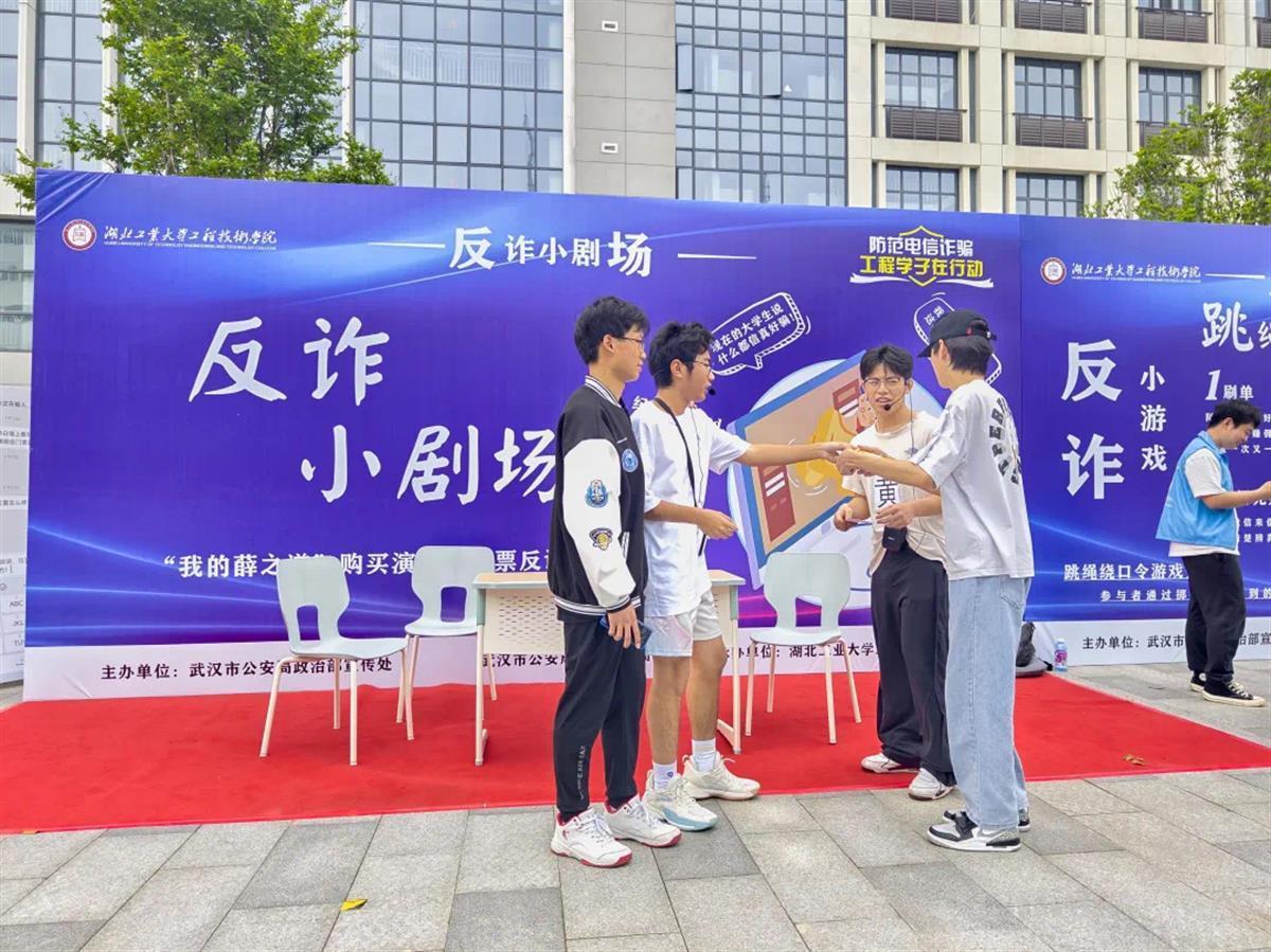 湖北日报讯(通讯员张茜、韦媛媛)接地气的反诈短剧、原创反诈漫画展、创意满满的“快闪”啦啦操,还有反诈气排球对垒赛……近日,湖北工业大学工程技术学院联合洪山警方举办反电信诈骗宣传日活动,别开生面、形式新颖的防诈安全教育课让现场师生鼓掌叫好。线上各直播平台累计观看量超过20万。