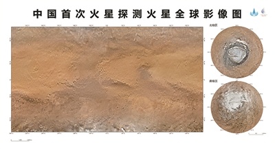 本次发布的影像图为彩色,包括按照制图标准分别制作的火星东西半球正射投影图、鲁宾逊投影图和墨卡托投影加方位投影图,空间分辨率为76米,将为开展火星探测工程和火星科学研究提供质量更好的基础底图。天问一号任务获取的包括影像图在内的一批科学探测数据,将为人类深入认知火星作出中国贡献。