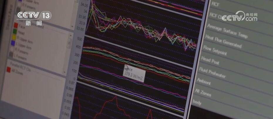 中国航天科技集团六院 北京航天试验技术研究所工程师 杨煊赫:这里面测的就是用我们自己的棉做的一件防寒服,从目前的结果来看,还是能达到预期,和同样规格的防寒冲锋衣相比,重量可以减轻40%,保暖性可以提高30%。