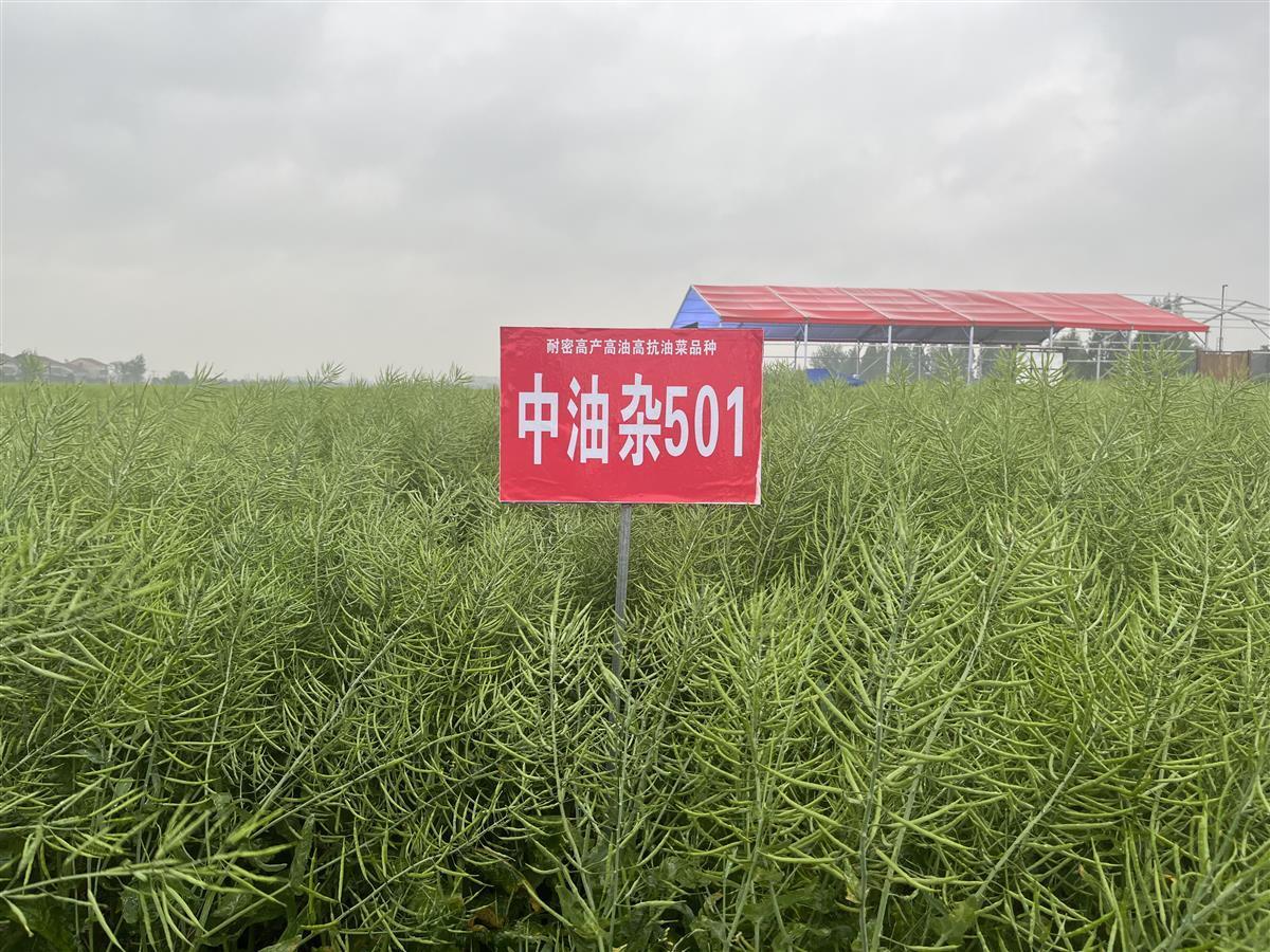 其中,“中油杂501”是油料所王汉中院士团队历经10年攻关选育而成的优势品种,种植密度可达每亩3万株左右,区试(种植密度每亩2万株左右)平均亩产213.11公斤,比对照增产12.66%,含油量高达50.38%,平均亩产油量107.35公斤,比对照增加26.93%,品质优于国家双低标准,具有抗倒、抗旱、抗寒、抗菌核病等特点,且花期集中,成熟期一致性好,有利于机械化生产。