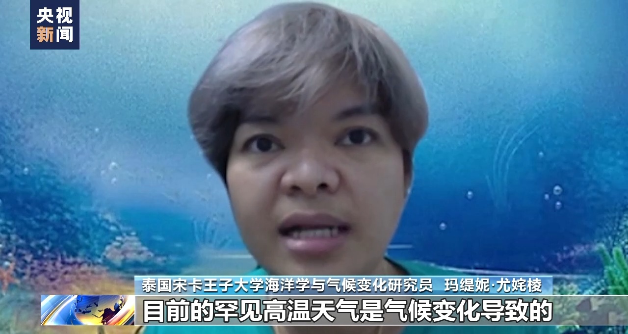 泰国宋卡王子大学海洋学与气候变化研究员 玛缇妮·尤姹棱:目前的罕见高温天气是气候变化导致的,是极端天气现象。