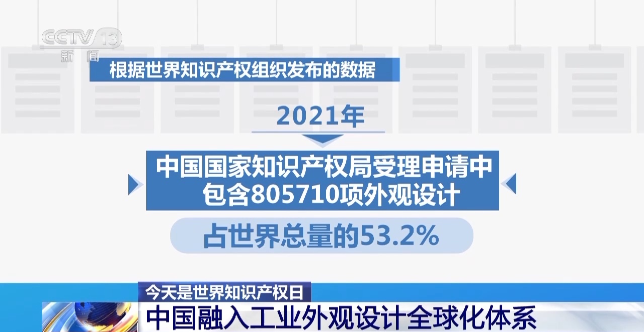 世界知识产权组织中国办事处高级顾问 吕国良:报告对全球140多个国家通过80几个参数进行排序,中国这几年的指标确实持续向好,我国工业品外观设计走出去的步伐也在加大。