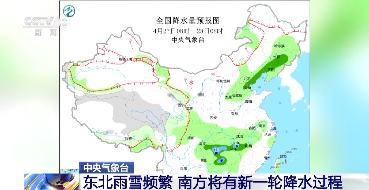 明天,新疆沿天山地区和南疆西部山区、西藏北部和南部、青海西部和南部、甘肃河西、川西高原北部等地部分地区有小到中雪或雨夹雪;吉林中东部、辽宁中部、河北东部、天津大部、贵州东部、重庆东南部、湖南中北部、江西西北部、广西北部等地部分地区有中到大雨,其中,湖南西部、贵州东部、广西东北部等地局地有暴雨。